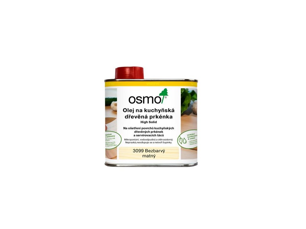 Bezbarvý přípravek, kombinující oleje a vosky. Osmo Olej na kuchyňská dřevěná prkénka je na bázi přírodních olejů a vosků. Vytváří mikroporézní povrch, který nepraská, neodlupuje se, netvoří šupinky ani puchýřky. Ošetřený povrch je odolný vůči vínu, pivu, kole, kávě, čaji, ovocným šťávám, mléku a vodě v souladu s požadavky normy DIN 68861 – 1 A, nezanechává stopy po vodě. Po zaschnutí je nátěr neškodný pro lidi, zvířata a rostliny (odolný vůči potu a slinám podle normy DIN 53160). Osmo Olej na kuchyňská dřevěná prkénka je bezpečný při styku s potravinami v souladu s normou EN 1186 část 5/14. Doporučené použití: Osmo Olej na kuchyňská dřevěná prkénka je ideální pro ošetření kuchyňských dřevěných krájecích prkének. Vydatnost: 1 l výrobku vystačí při jednom nátěru na cca 24 m2. Vydatnost závisí do značné míry na charakteristikách dřeva. Uvedené hodnoty se vztahují na hladké hoblované/broušené dřevěné povrchy, u ostatních povrchů se může vydatnost odlišovat.Doplňkové parametry