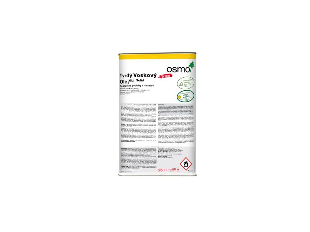 • Bezbarvý - do vnitřních prostor • Na bázi přírodních olejů a vosků – mikroporézní • Odpuzuje vodu a odolný proti ošlapání • Rychle schnoucí • Použitelný bez tužidla i s tužidlem • Odolný vůči vodě a nečistotám • Snadné použití • Odolný vůči otěru Profesionální, rychleschnoucí transparentní svrchní nátěr se zvláště tvrdým povrchem, který unikátním způsobem kombinuje přednosti přírodních olejů a vosků v jednom produktu. Plocha ošetřená výrobkem Osmo Tvrdý voskový olej Expres odpuzuje nečistoty a vodu, je odolná vůči otěru a je příjemná na dotyk. Jednoduché použití bez nutnosti podkladového nátěru nebo potřeby přebrušování – šetří čas a peníze. Mikroporézní, nepraská, neloupe se, netvoří šupinky. Odolný vůči vínu, pivu, kole, kávě, čaji, ovocným šťávám, mléku a vodě, vyhovuje požadavkům normy DIN 68861-1A, zamezuje vzniku stop po vodě. Po zaschnutí je nátěr neškodný pro lidi, zvířata a rostliny (odolný vůči potu a slinám podle normy DIN 53160, vhodné i pro dětské hračky v souladu s požadavky normy EN 71.3). Vydatnost : 1 l stačí při jednom nátěru na cca. 24 m2. Pro ošetření podlah s bezbarvým povrchem nutno aplikovat 2 nátěry tzn. 1 l stačí na ca. 12 m2 konečného ošetřeného povrchu. Vydatnost je přímo závislá na typu povrchu. Naše vydatnosti jsou počítány pro hladce hoblované povrchy. V případě strukturovaných, kartáčovaných, drásaných a jinak upravených povrchů musíte počítat s vyšší spotřebou materiálu. Doba použitelnosti je 5 let a více, je-li výrobek uchován dobře uzavřený na suchém místě. Pokud výrobek vlivem nízkých teplot zhoustne, je třeba ho pro znovunabytí původní konzistence ponechat při pokojové teplotě po dobu 24 – 36 hodin před vlastní aplikací.Doplňkové parametry