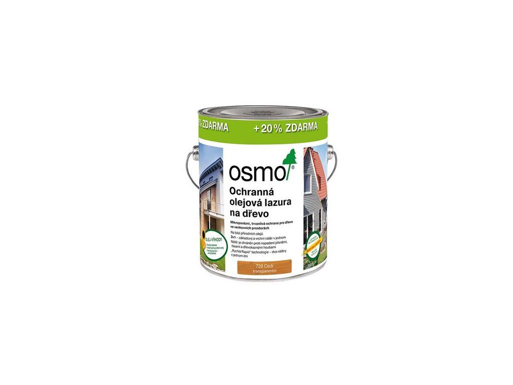 Penetrace a lazura sjednocená v jednom nátěru – inovativní dlouhodobá ochrana dřeva na bázi oleje! Ochranná olejová lazura je transparentní, polomatná a určená k použití venku. Mikroporézní, trvanlivá ochrana pro dřevo ve venkovních prostorách. Popis výrobku: Ochranná olejová lazura je polomatný nátěr na bázi přírodních olejů na veškeré dřevo ve vnějších prostorách. S otevřenými póry, nechá dřevo dýchat, snižuje bobtnání a sesýchání. Odpuzuje vodu, je mimořádně odolný vůči povětrnosti a UV záření. Nátěr obsahuje účinné látky k preventivní ochraně nátěru před napadením plísní, řasou a houbou. Neodprýskává, nepraská a neodlupuje se. Doporučuje se pro: Veškeré dřevo ve vnějších prostorách: dřevěné fasády, přístřešky pro auta, dveře, okna, balkóny, ploty, pohledové zábrany atd. Vybírat můžete z 18 standardních barevných odstínů. Počet nátěrů: U dřeva bez povrchové úpravy dva nátěry, v případě renovace stačí zpravidla jeden nátěr na očištěný povrch – bez obrušování! 1 litr stačí při jednom nátěru na cca 26 m2 Uvedená akční cena lze sčítat s dalšímy slevami. Určeno pro maloobchodní i velkoobchodní prodej.Doplňkové parametry