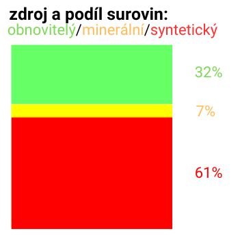 Čištěný technický benzín (bez aromatických řetězců), směs pryskyřic z tálového oleje, směs pryskyřic sójového oleje, roztok kalafunové pryskyřice, světlicový olej, matovací činidlo, mikrovosk, oxid zinečnatý, bentonit, smáčedlo, protipěnové činidlo, kobaltpolymer sikativ, vápenný, manganový sikativ a antioxidant.