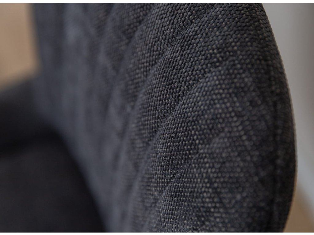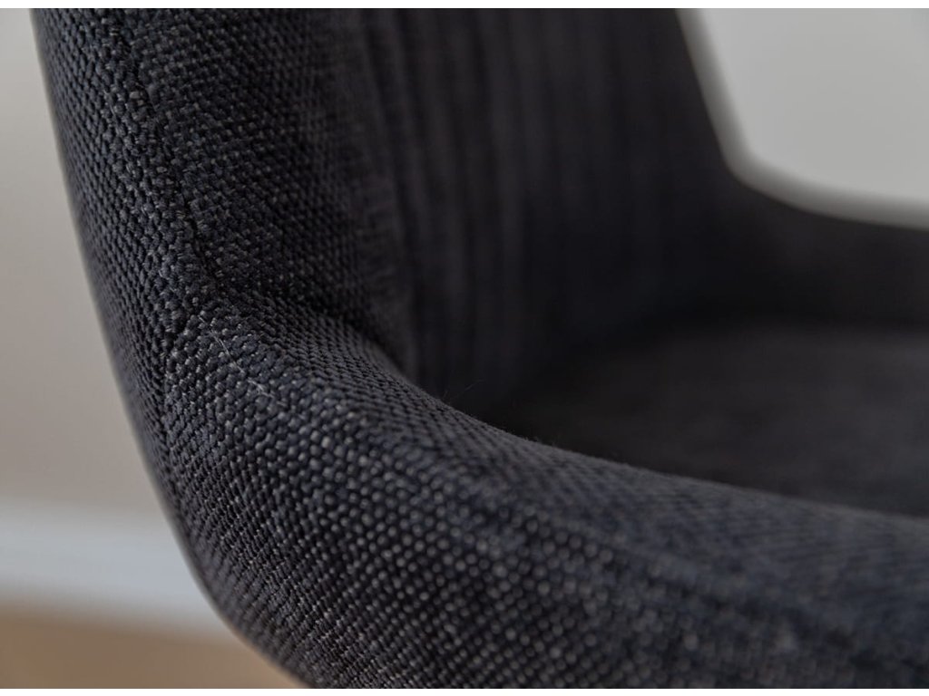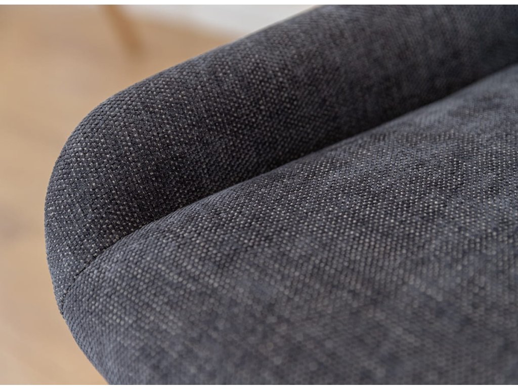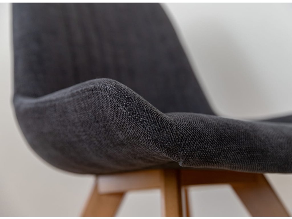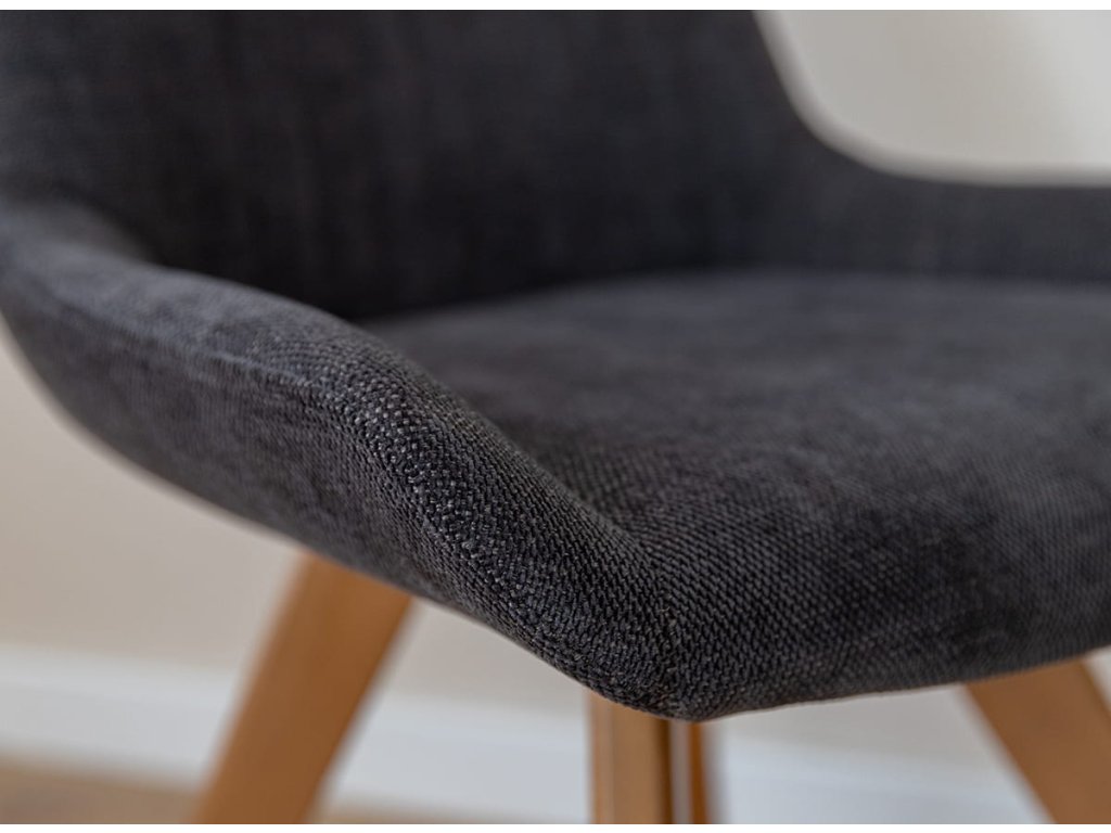 Čalouněná židle Bari s klasickým a zároveň moderním designem je dokonalým doplňkem každého prostoru ve skandinávském, modernistickém nebo minimalistickém stylu. Bukové nohy s jednoduchým, jemně rozkročeným tvarem poskytují stabilní oporu a dodávají teplo, které kontrastuje s grafitovým čalouněním. Středně tkané žinylkové čalounění mezitím dodává jemnou texturu a hloubku. Měkká a na dotek příjemná tkanina navíc vybízí k pohodlnému lenošení, zatímco charakteristické proplétání nití v několika odstínech grafitové barvy vytváří v závislosti na světle zajímavý vizuální efekt a hru stínů.