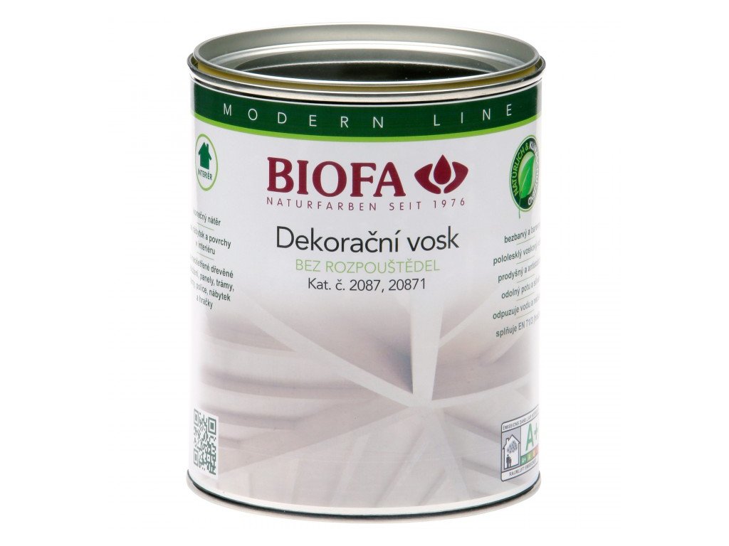 Dekorační vosk BIOFA je vodou ředitelná emulze přírodních vosků, pigmentů a škrobů, ideální pro úpravu vnitřních dřevěných povrchů. Je navržen tak, aby zvýraznil strukturu dřeva, chránil ji před nečistotami a dodal povrchu příjemný matný vzhled. Vosk se snadno nanáší i na velké plochy, a to i ve špatně přístupných místech, což ocení každý, kdo pracuje se stropy, trámy nebo dekoracemi nad hlavou.