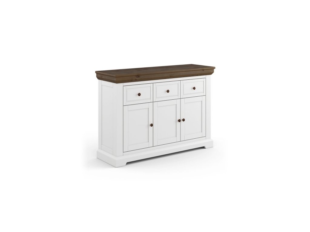 Představená komoda v bílé barvě je kus nábytku, který uspokojí i ty nejnáročnější prostory. Snadno se do ní vejde oblečení, lůžkoviny, hračky nebo jiné domácí potřeby. Její rozsáhlou horní část lze využít k umístění televize, dekorativních předmětů nebo jako další pracovní plochu.