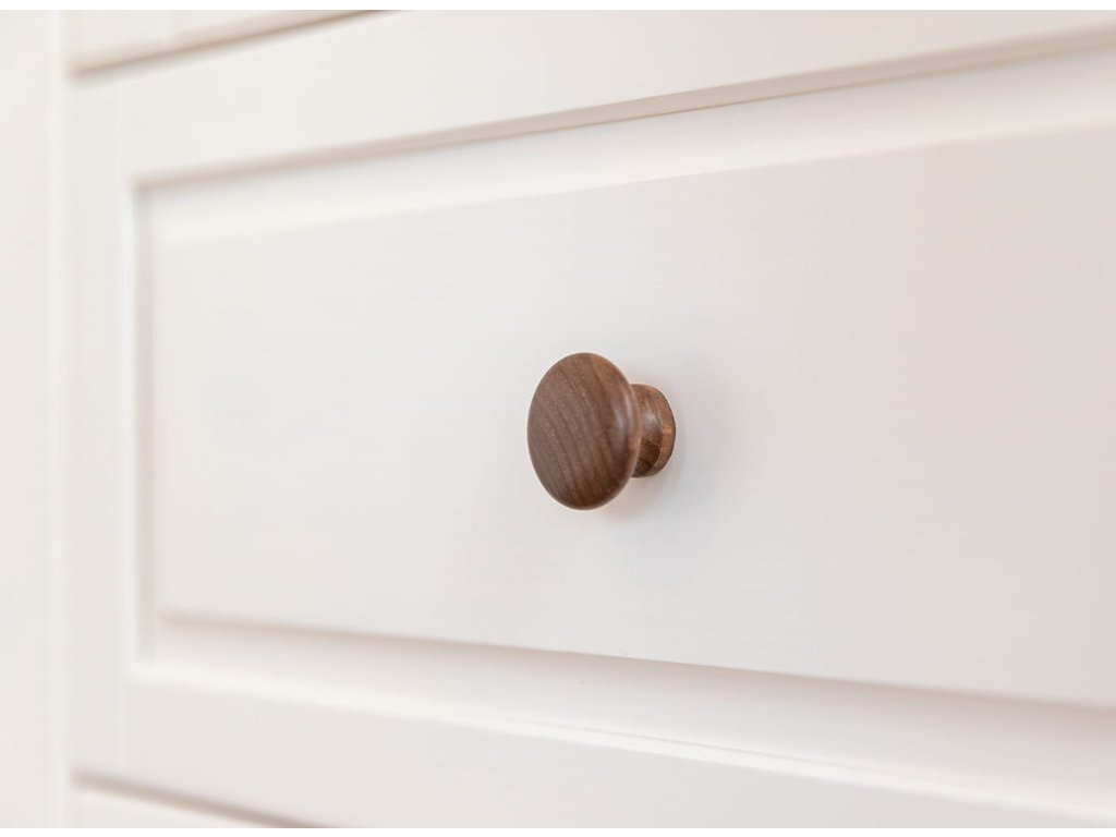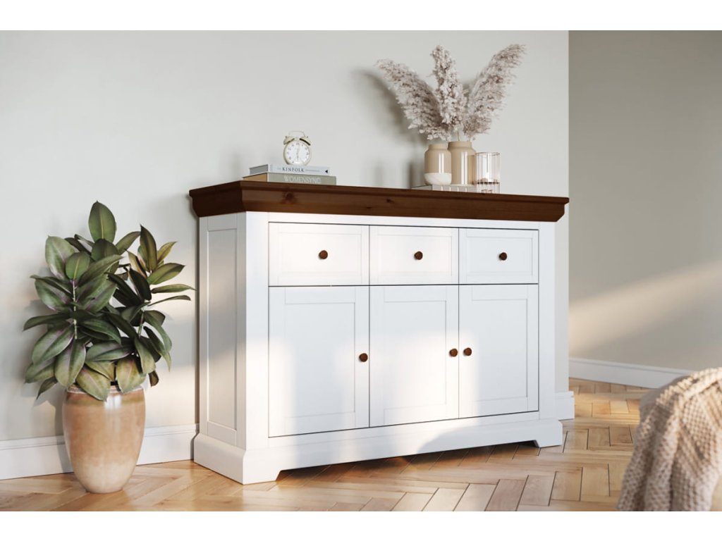 Dřevěná komoda z finské borovice kombinuje přirozenou vizuální hřejivost s moderní funkčností. Povrchy chráněné ekologickou vodou ředitelnou barvou s krytím 85 % zachovávají krásu a strukturu dřeva a zároveň jsou odolné vůči každodennímu používání. Dřevěné kování dodává komodě klasický šarm, zatímco inovativní funkce tichého zavírání poskytuje příkladný komfort. Odolné a trvanlivé materiály použité při výrobě zaručují dlouholetou odolnost proti poškození, což z masivu činí vynikající investici. Díky těmto výhodám se může stát rodinným dědictvím předávaným z generace na generaci.