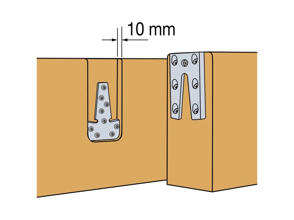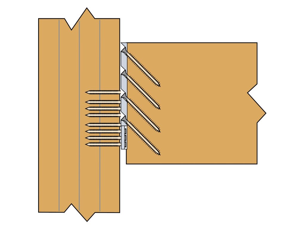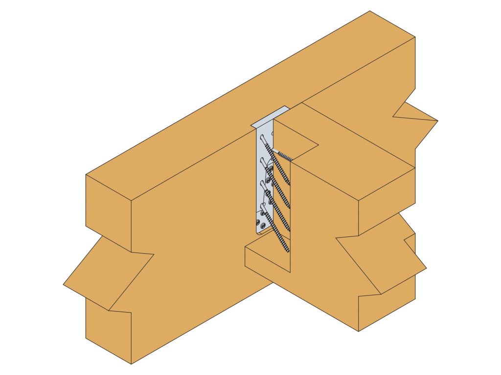 Spoje dřevo / dřevo vedlejšího nosníku k hlavnímu nosníku nebo opěrám. Se systémem lze realizovat sklony nahoru do 90° a šikminy v rozsahu 15°-165°.