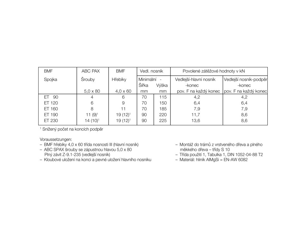 V hlavním nosníku kotevní hřebíky CNA4,0x40 - 100 mm nebo šrouby CSA5,0x40 - 50 mm. Ve vedlejším nosníku je nutné použít šrouby s plným závitem SPAX o rozměru 5,0x60 - 100 mm.