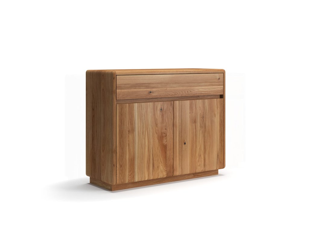 Komoda Ronda 1.2 kombinuje "měkkou" geometrii s přirozenou pevností. Její zaoblený tvar umožňuje, aby kus plynule splynul s prostorem – bez ostrých hran. Její celá vyrobená z masivního dubu přitahuje pozornost svými klidnými liniemi a teplou, příjemnou barvou. Horní zásuvka a dvoje spodní dvířka, které skrývají prostornou polici, poskytují překvapivé množství úložného prostoru i přes svou kompaktní velikost. Tato komoda se časem stane jedním z těch kusů nábytku, bez kterých si jen těžko dokážete představit život.