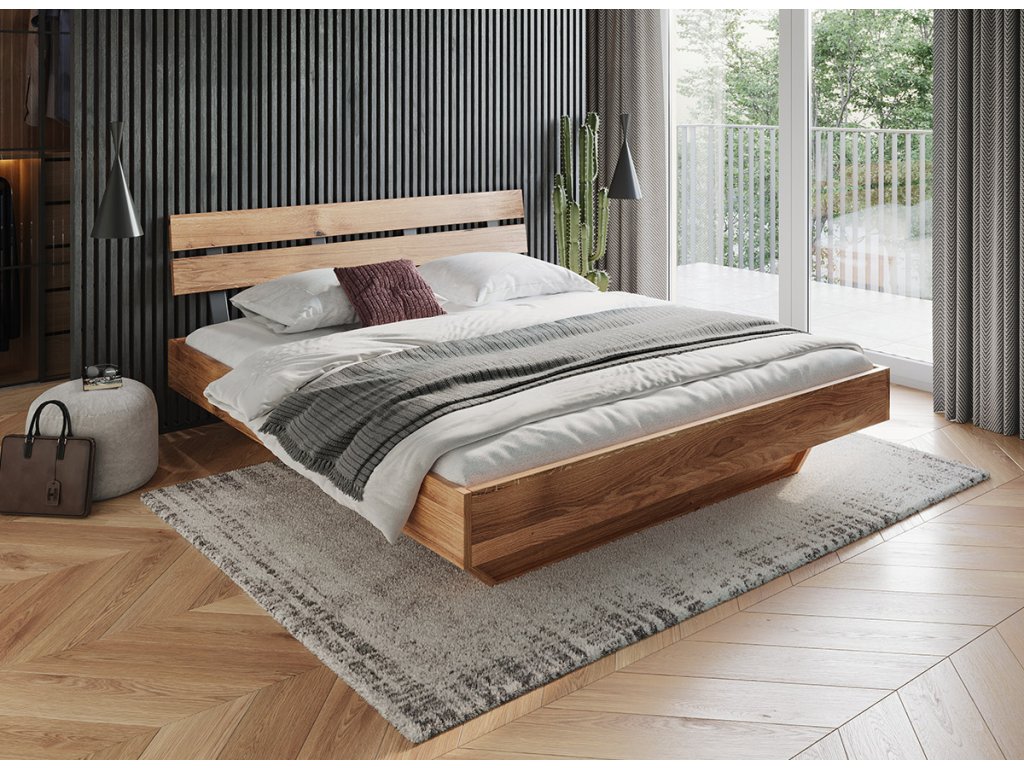 Dubová postel Toretta s dřevěnými nohami a jednoduchým opěradlem rozměr 85x220x167 (160x200cm)
