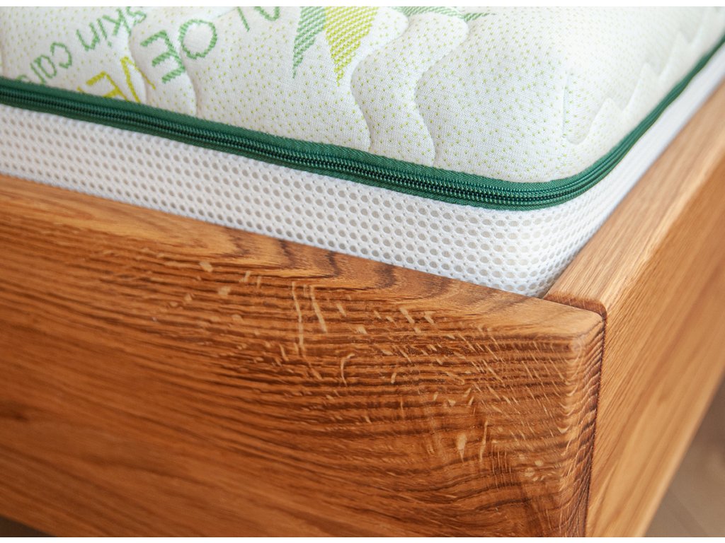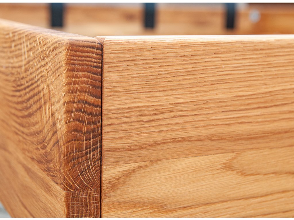 Masivní dubové dřevo se vyznačuje výjimečnou tvrdostí. Díky tomu je nábytek z něj extrémně odolný a odolný vůči zraněním a mechanickému poškození. Nejsou zdeformovány ani poškozeny vlivem zatížení. Jsou také odolné vůči skvrnám, škrábancům a povrchovým oděrkám. Dřevěná postel z dubu je zárukou stability a dlouholeté trvanlivosti. Olejová úprava dřeva zvyšuje jeho ochranné vlastnosti a navíc jej chrání před vlhkostí a blednutím.