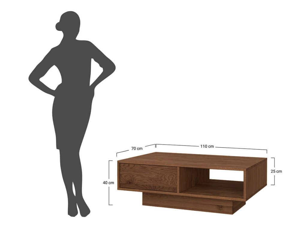 Dubový konferenční stolek Collodi, Tabák, olejová, masiv, rozměr 40x110x70cm