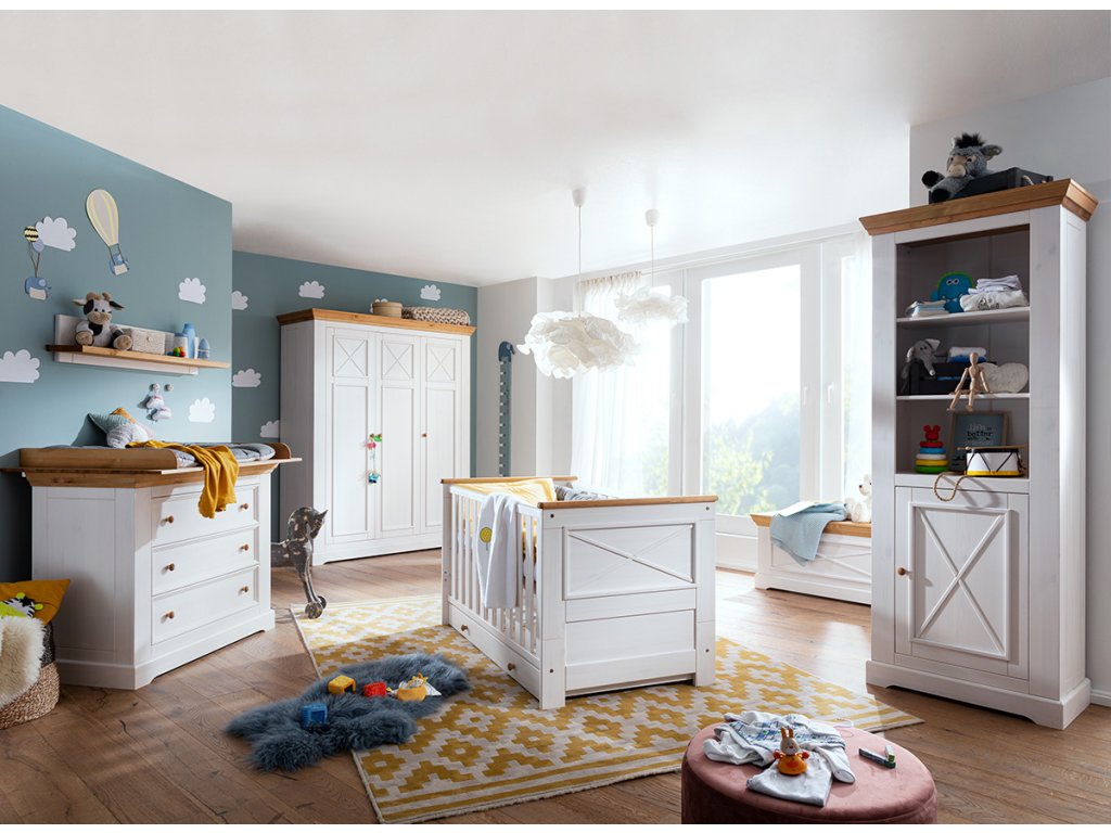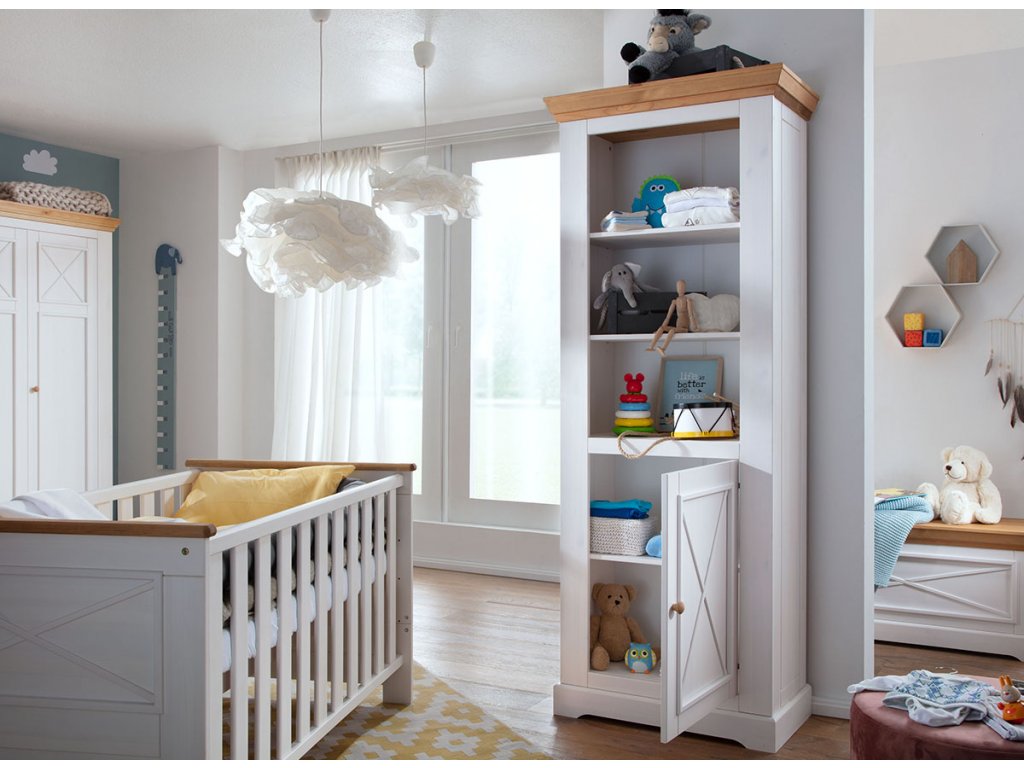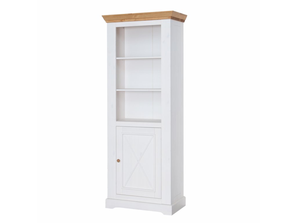Knihovna je vyrobena z masivního borového dřeva. Díky poutavým odstínům a vzorům je nábytek útulnější a hřeje do vašeho interiéru. Rysem, který odlišuje bílou dřevěnou knihovnu od nábytku dostupného na trhu, je rustikální design. Funkční police knihovny, které jsou umístěny v horní části, jsou ideálním místem pro knihy, dokumenty nebo hračky pro děti. Na druhé straně police za dveřmi pojmou věci, které byste nechtěli vystavit. Další výhodou je možnost nastavení polic v horní části dřevěné police.