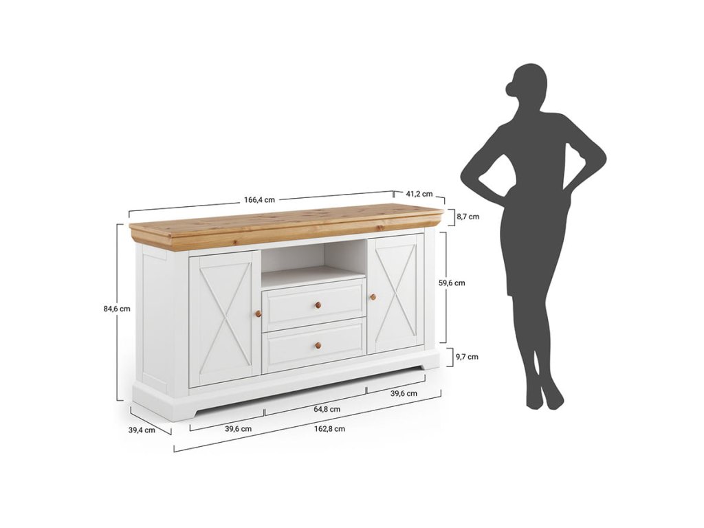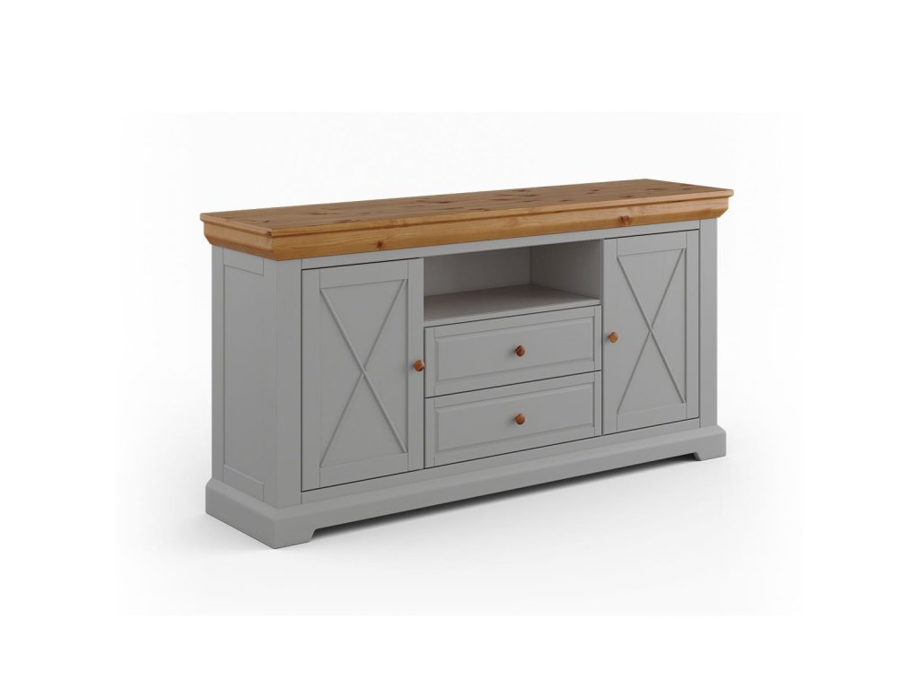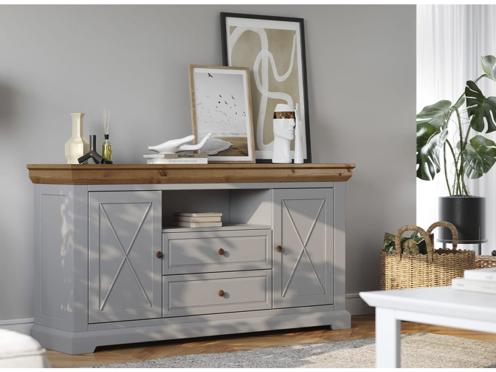Plánujete zařizování vašeho bytu a uvažujete, kde uložíte všechny své předměty, dokumenty, talíře a oblečení? Pro uložení všech těchto předmětů by se vám mohl hodit kus nábytku. Stylová dřevěná komoda Marone Elite 2.2 s dvěma zásuvkami a dvěma prostornými skříňkami by mohla být tím správným řešením. Její provensálský styl podtrhuje přírodní světlé barvy bílé a borovice, a také rámy na čelech a šikmé lišty.