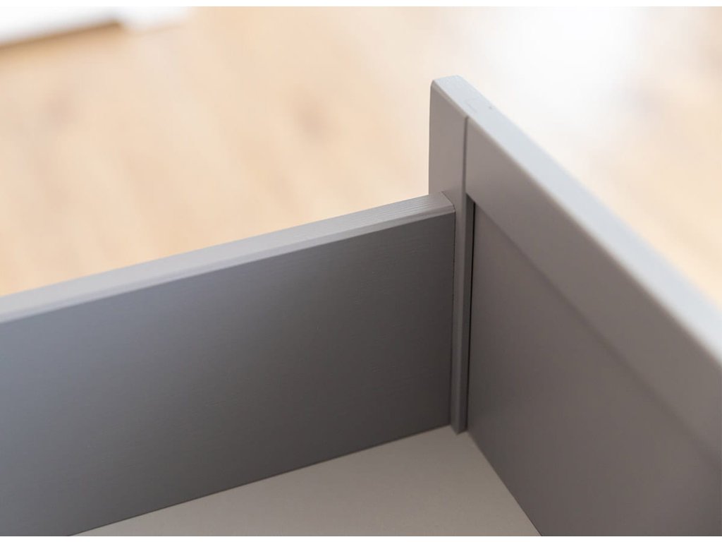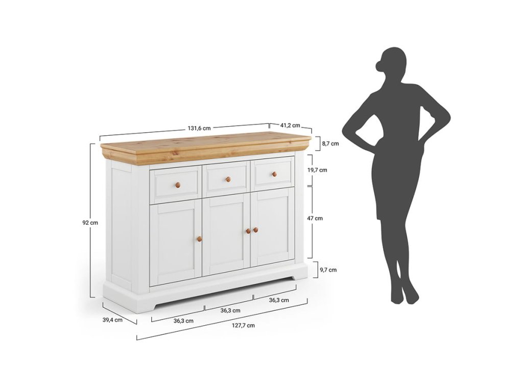 Komoda poskytuje dostatek úložného prostoru, a tak můžete do ní uložit cokoliv, co potřebujete. V obývacím pokoji můžete skladovat ubrusy a ubrousky, v jídelně velké nádobí a příbory, v pracovně dokumenty a v ložnici oblečení. Věci můžete rozdělit podle velikosti a funkce a umístit je do zásuvek (klíče, nabíječky, spodní prádlo, šperky, příbory) nebo do prostorných skříní (vázy, džíny, pořadače). Zásuvky jsou umístěny na tichých pojezdech, což zvyšuje pohodlí při používání. Navíc je k dispozici široká horní část komody pro výše