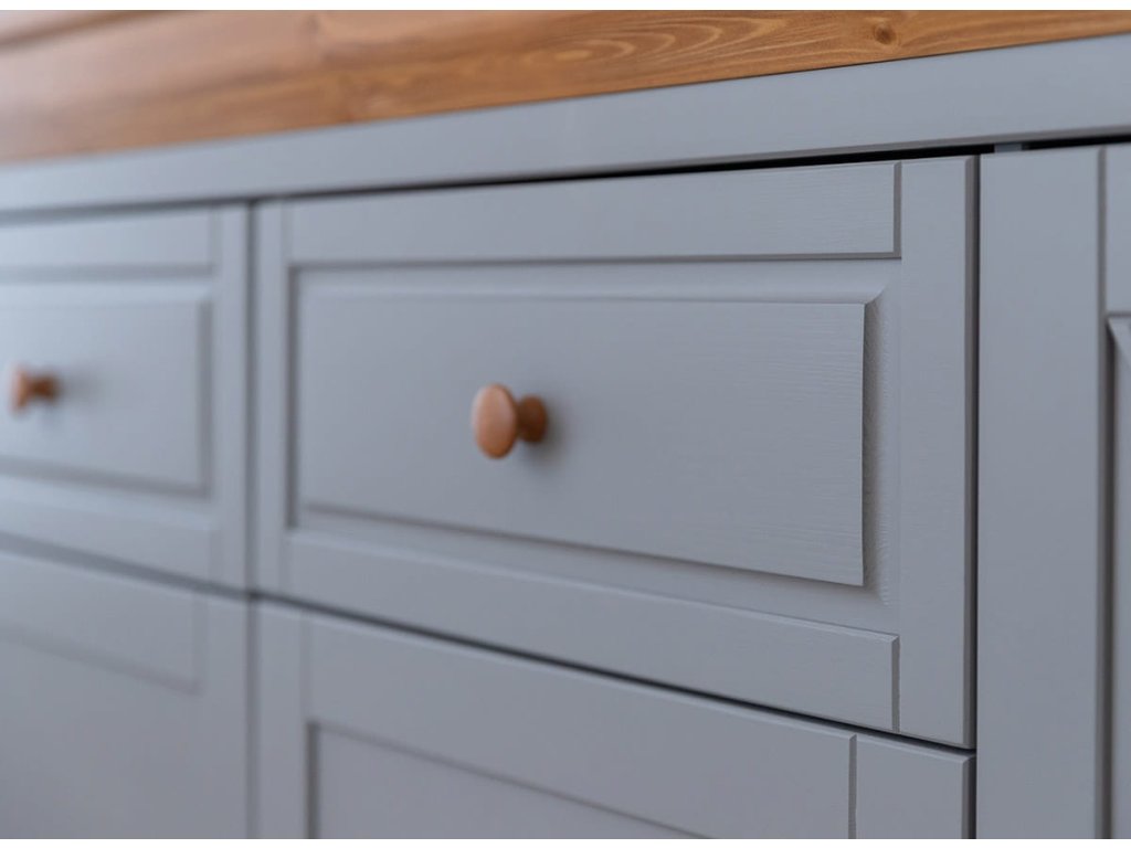 Dřevná komoda je dodávána rozmontovaná v balíčku. Najdete v něm také montážní příslušenství a návod. Pokud se do montáže nechcete pustit sami, objednejte si ji u našich profesionálů – vyučených truhlářů.