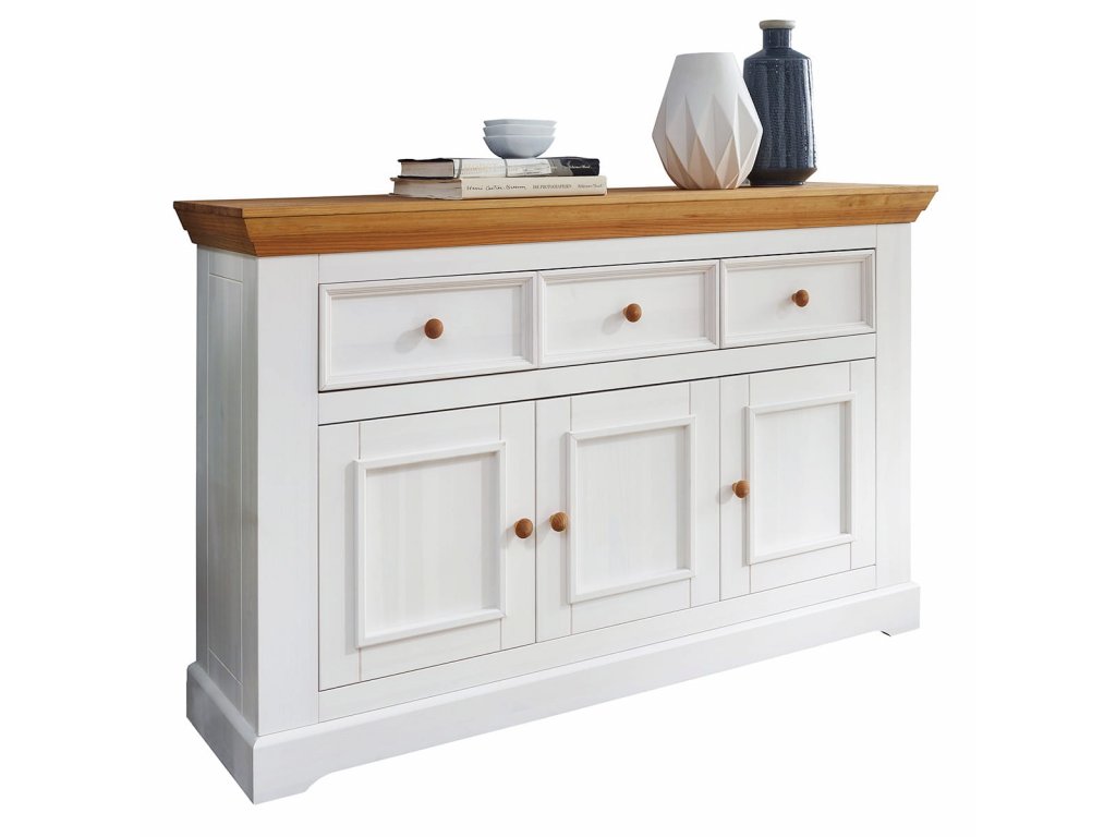Součástí kolekce nábytku z přírodního dřeva je bílá dřevěná komoda 3.3 Marone s rustikálním designem, který jí dodává šarm a vnesou do Vašeho obývacího pokoje nebo jídelny útulnou atmosféru. Celá komoda je vyrobena z masivního borovicového dřeva a nabízí pevnost, masivnost, přírodní půvab a funkčnost.
