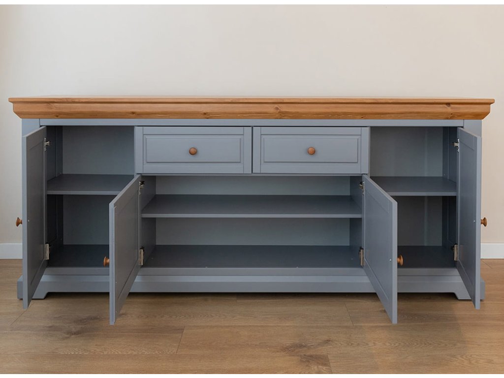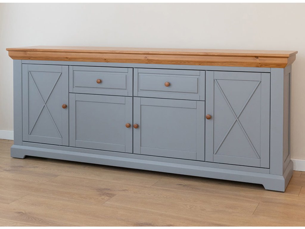 Tato velká čtyřdveřová komoda dokonale doplní opravdu velké interiéry a může být hlavním kusem nábytku v místnosti. Tento nábytek rovněž dobře funguje jako TV stolek a díky svému elegantnímu stylu nepotřebuje žádné další doplňky.