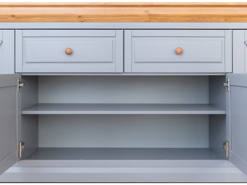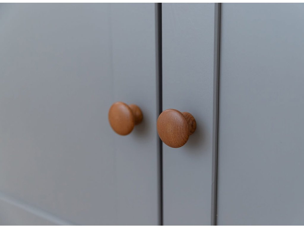 Kromě pečlivého výběru materiálů se pro nás stejně důležitou stává i estetika. Místo maskování přírodní krásy se snažíme zachovat a zdůraznit jejich přirozené vlastnosti. To dokazuje například pracovní deska komody, kterou jsme pokryli vodním mořidlem a vodním lakem, aby se zvýraznila její kresba a suky. Bílé tělo a čela komody jsou pak ošetřeny bílým lakem s 85% krytím. Dřevěná komoda má pojezdy s tichým dovíráním a čela jsou opatřena dřevěnými úchytkami s knoflíky. Pokud chcete, aby váš nábytek vypadal stále stejně krásně, doporučujeme ho umístit mimo dosah zdrojů tepla, jako jsou krb, radiátory a sporáky, a chránit ho před slunečním zářením. Pro čištění volte místo silných čisticích prostředků určený přípravkek na dřevo.