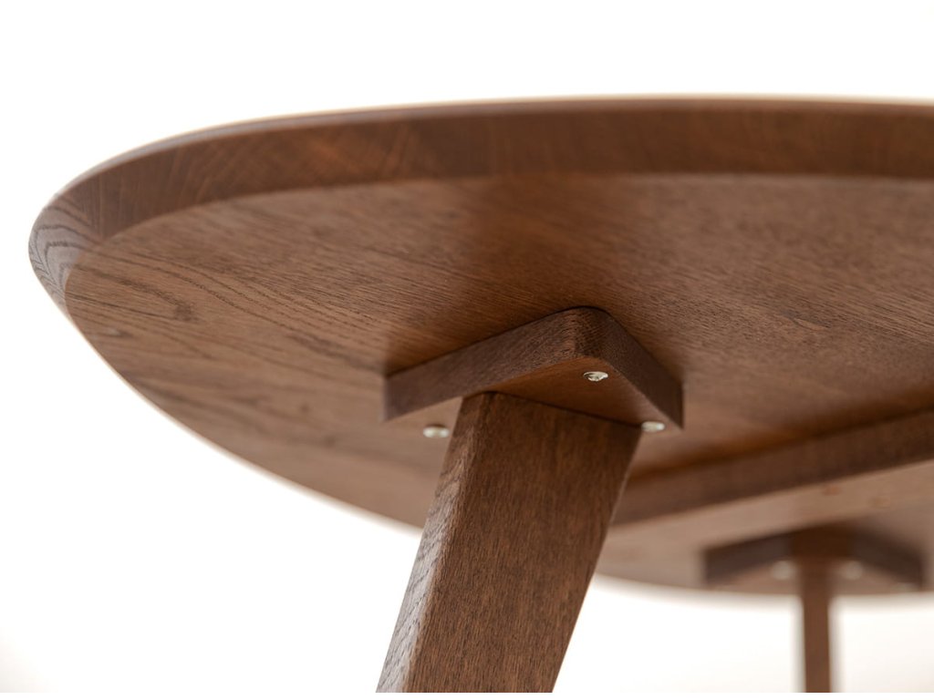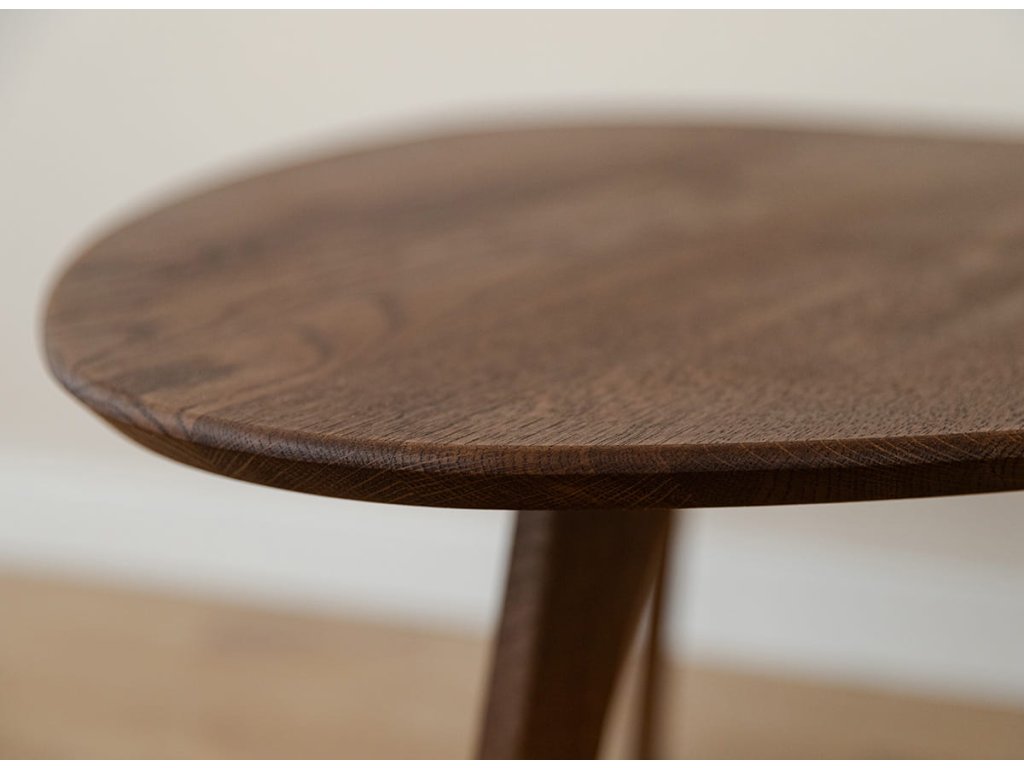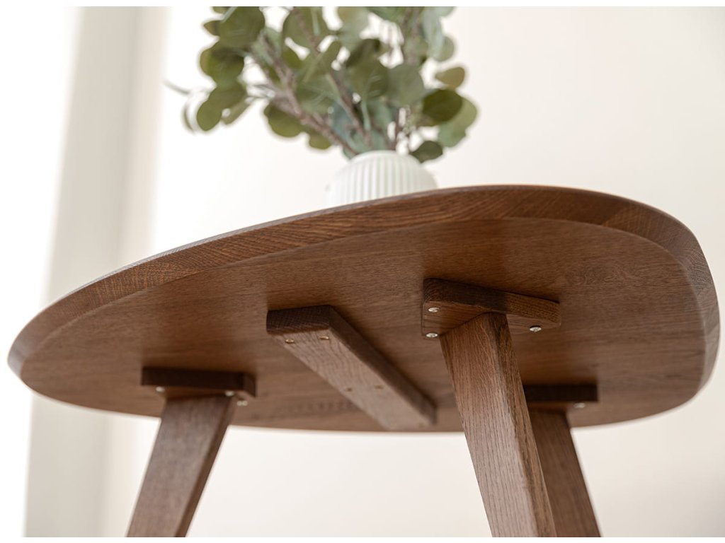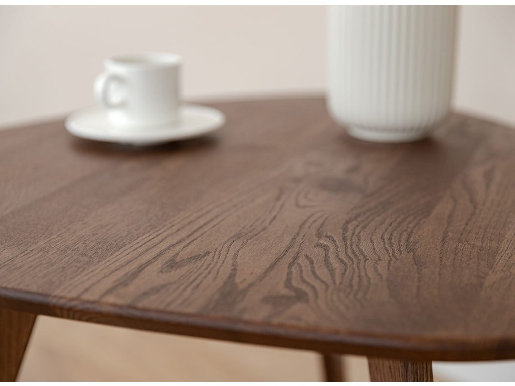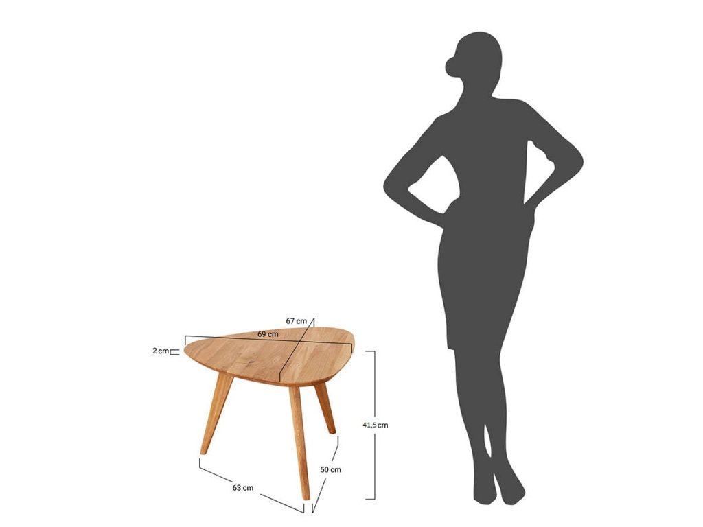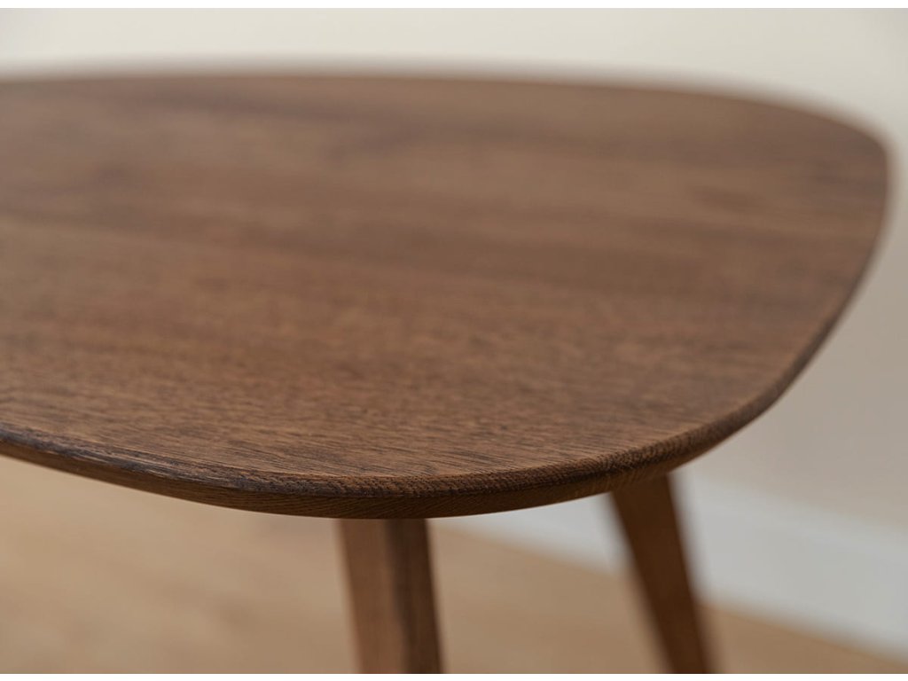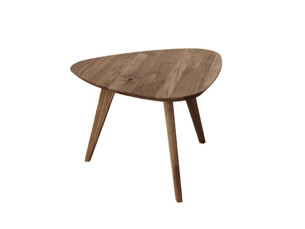 Trojúhelníkový konferenční stolek nabízí neomezené možnosti uspořádání prostoru. Jeho neobvyklý tvar dodá místnosti styl a charakter. Deska stolku, která měří v nejširším místě 68 cm, poskytuje dostatek místa pro všechny předměty denní potřeby. Tento stolek je vyroben z dubového dřeva, jehož přírodní kresba dodává každému kusu nábytku kouzlo a činí ho jedinečným.