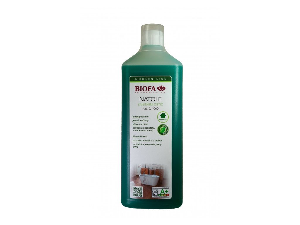 BIOFA Natole je ekologický sanitární čistič určený pro každodenní údržbu koupelen, sprchových koutů a toalet. Jeho přírodní složení efektivně odstraňuje vodní kámen, zbytky mýdla, moči i jiné nečistoty, aniž by poškozovalo čištěné povrchy nebo životní prostředí.