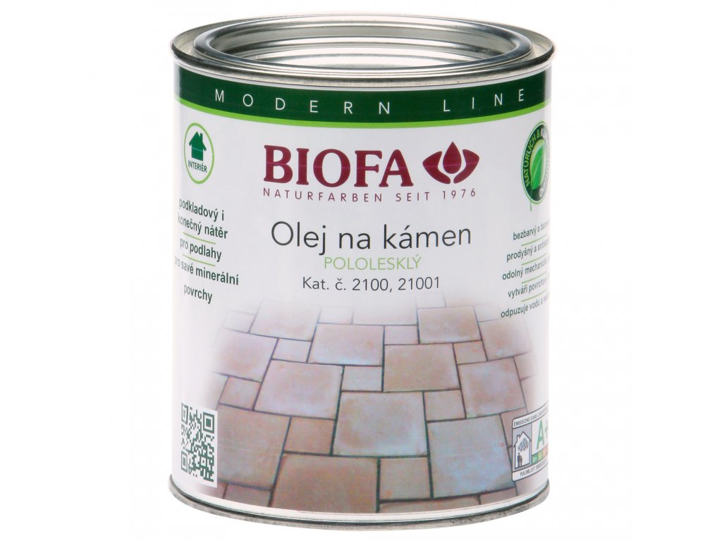 BIOFA Olej na kámen se vyrábí z vysoce hodnotných surovin, vytváří pololesklý povrch, který je odolný a hydrofobní a má minimální sklon ke žloutnutí. Je vhodný jako bezbarvý nebo transparentně zbarvený podkladový i konečný nátěr na savé minerální podlahy v interiérech. ZAbarvnéný olej má krycí schopnost, jednotlivé odstíny lze libovolně vrstvit.