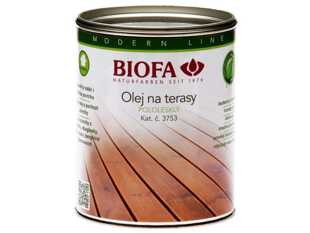 Vlastnosti: Směs přírodních pryskyřic a olejů vhodná pro ošetření teras. Nově natřené dřevo je chráněno proti vlivu vlhkosti, starší obnovované povrchy oživuje. Vhodné taky pro tepelně upravené dřevo - termowood. Olej na terasy proniká hluboko do dřeva, snadno a rychle se zpracovává.