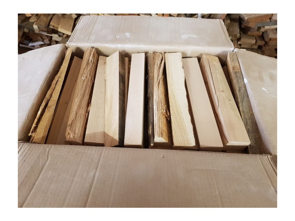 Druh dřeva: dub, buk, ořech, jasan - v krabici se může vyskytovat do 15% smrk a borovice