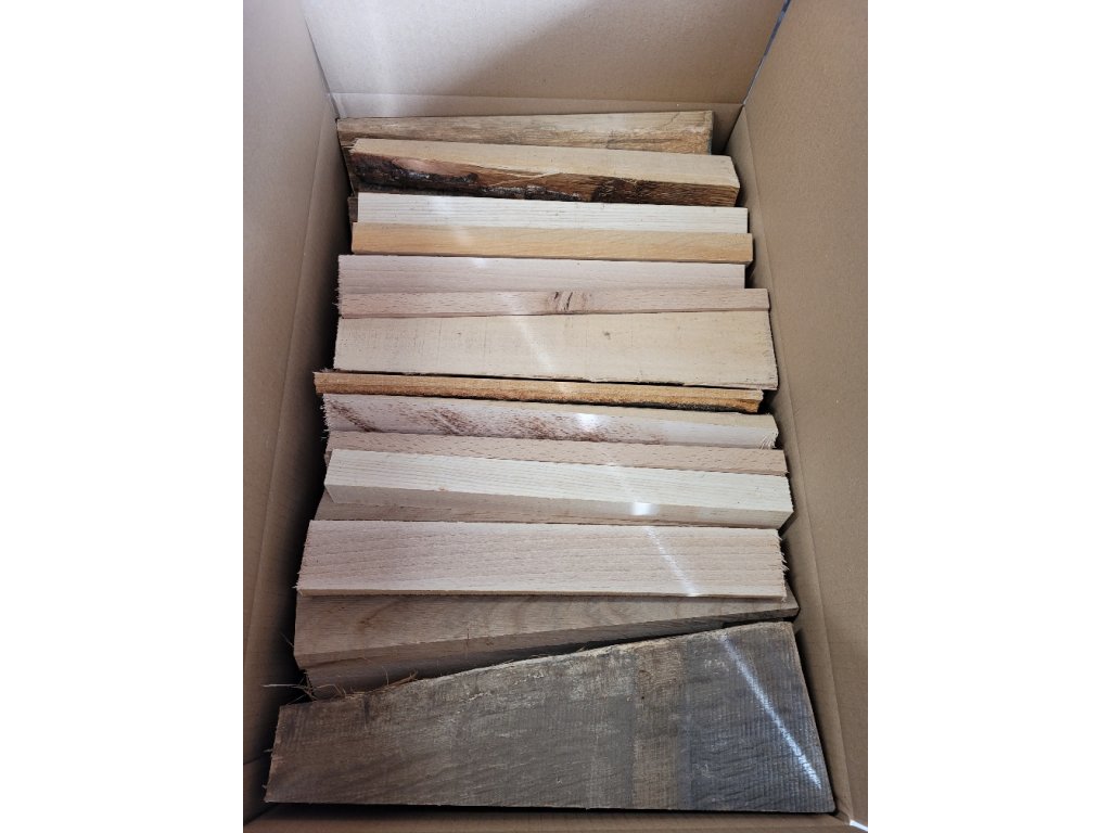 Druh dřeva: dub, buk, ořech, jasan - v krabici se může vyskytovat do 15% smrk a borovice