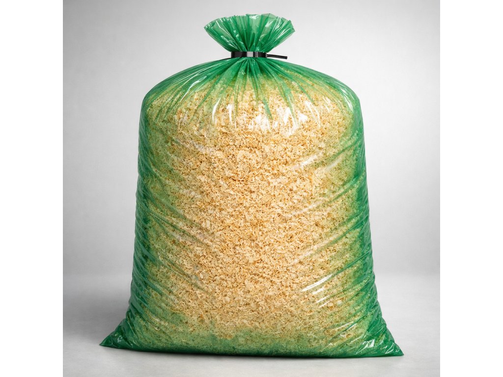 Směs pilin, hoblin a dřevního prachu je balena v praktických zelených pytlích o objemu 120 litrů. Hmotnost jednoho pytle je přibližně 15 kg. Díky tomuto balení se s materiálem snadno manipuluje, dobře se skladuje a je připravený k okamžitému použití.