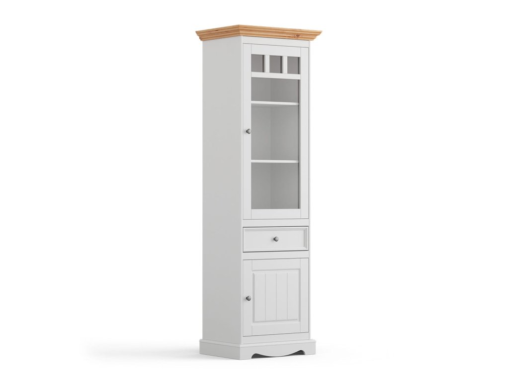 Vitrína pravá Belluno Elegante bílá-přírodní borovice, masiv, rozměr 190x60x45cm