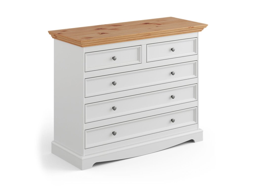 Dřevěná komoda Belluno Elegante, bílá-přírodní borovice, 5x zásuvka, rozměr 88x112x45cm
