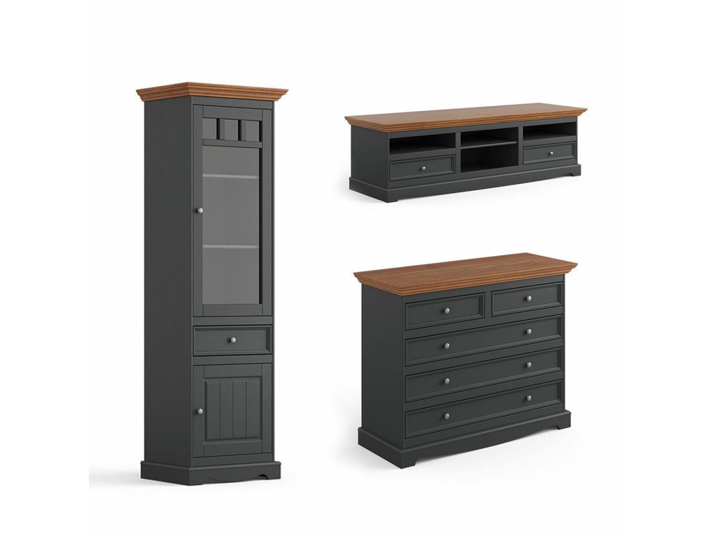 Dřevěná TV komoda velká Belluno Elegante,grafit-dub, masiv, borovice, rozměr 53x167x53cm