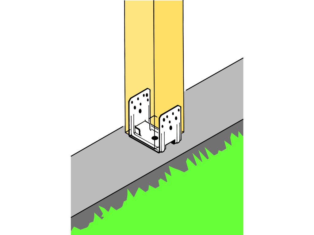 Patky sloupku PU se postaví přímo na podklad a jejich poloha se zajistí kotevními čepy.