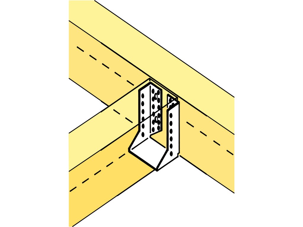 Připojení sekundárních nosníků ze dřeva nebo materiálů na bázi dřeva k hlavním nosníkům nebo sloupům. Také vhodný pro biaxiální zatížení.