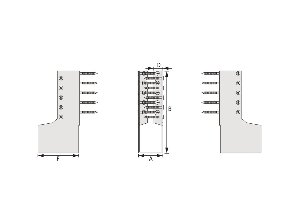 Připojení sekundárních nosníků ze dřeva nebo materiálů na bázi dřeva k hlavním nosníkům nebo sloupům. Také vhodný pro biaxiální zatížení.