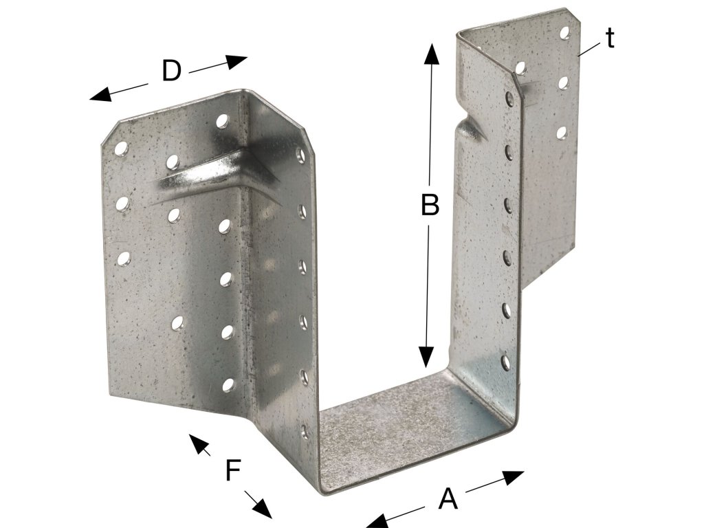 Připojení sekundárních nosníků ze dřeva nebo materiálů na bázi dřeva k hlavním nosníkům nebo sloupům. Vhodné také pro dvouosé zatížení.