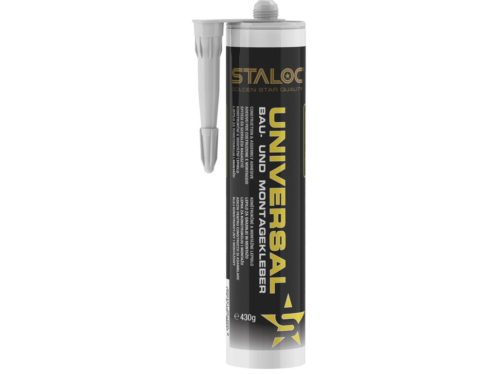 STALOC univerzální montážní lepidlo zajišťuje pevný spoj bez nutnosti vrtání či šroubování. Je odolné vůči vlhkosti i teplotním výkyvům, takže jej lze využít v interiéru i exteriéru.