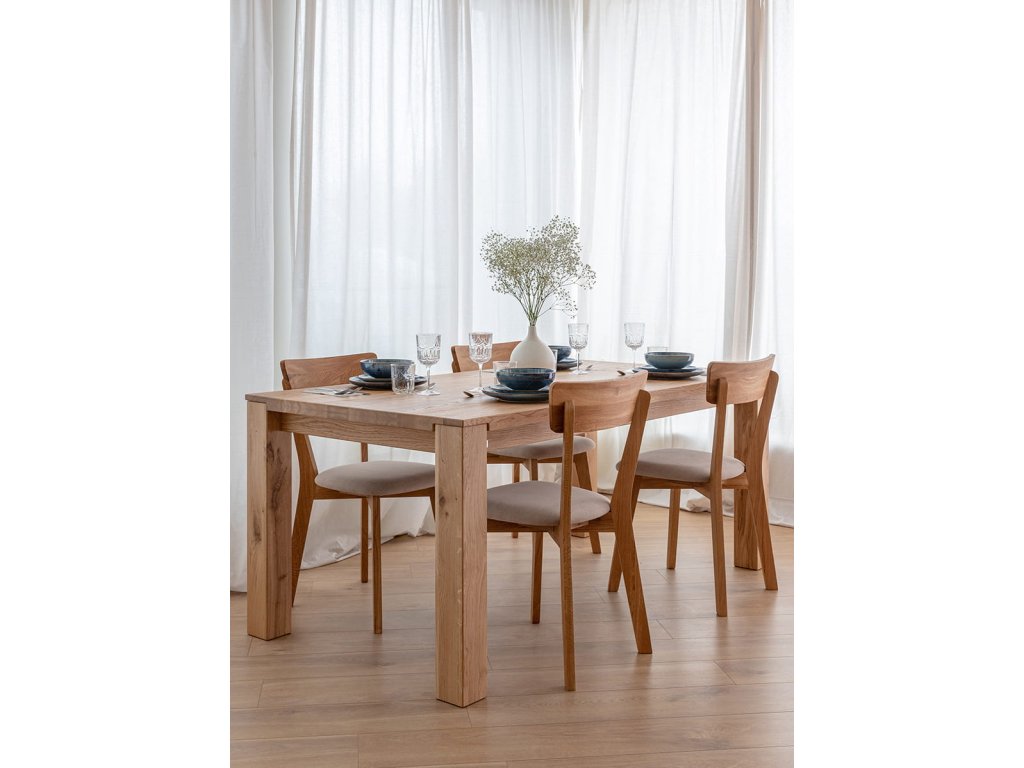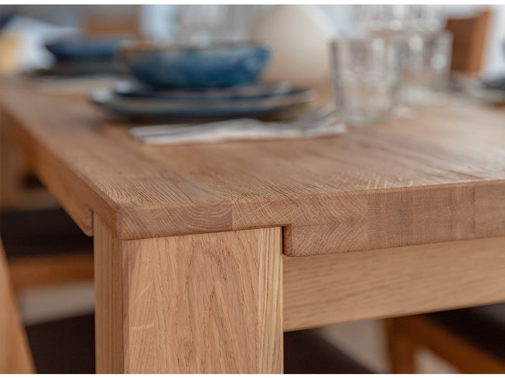 Na výrobu stolu jsme použili to nejkvalitnější dubové dřevo. Speciálně vybrané a vybrané pro konzistenci struktury dřeva. Masivní prvky, jako jsou nohy a 4 cm silná deska, jsou zárukou odolnosti. Precizně zkombinované tvoří jednolitý celek.