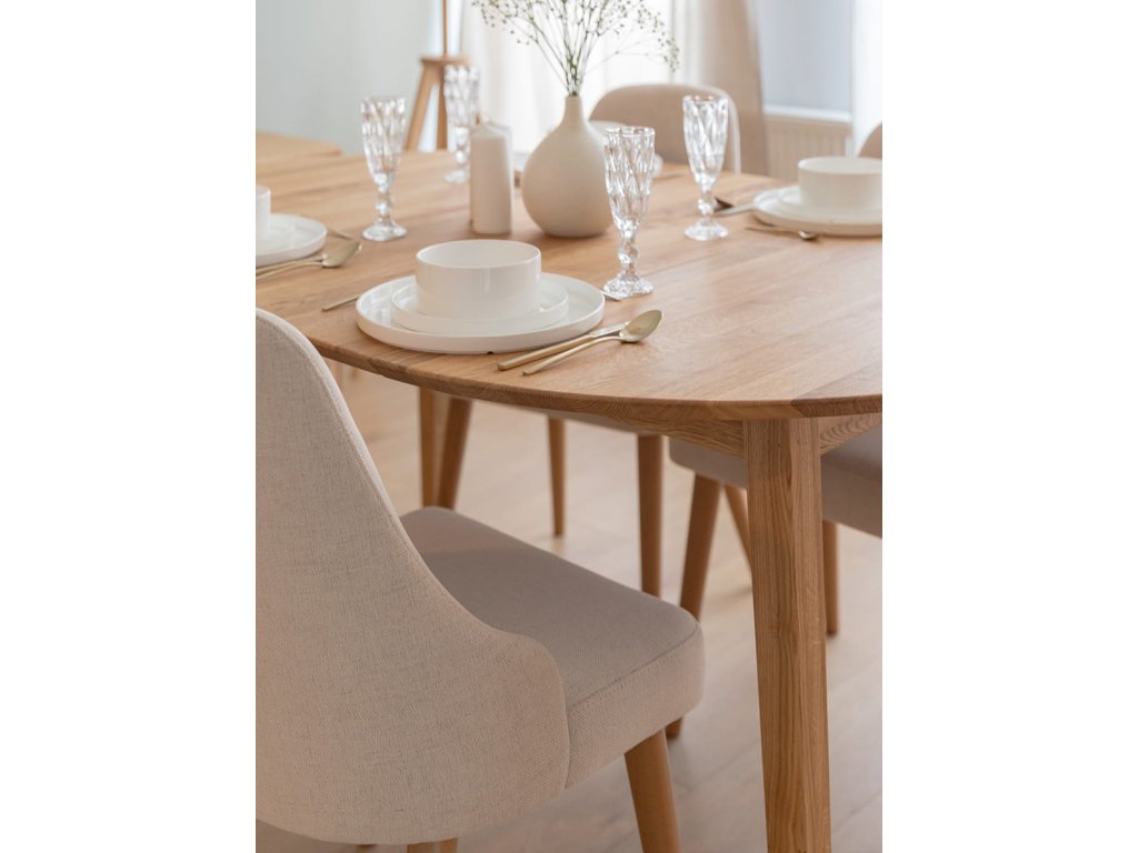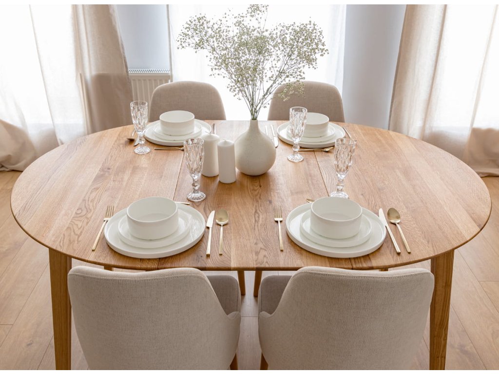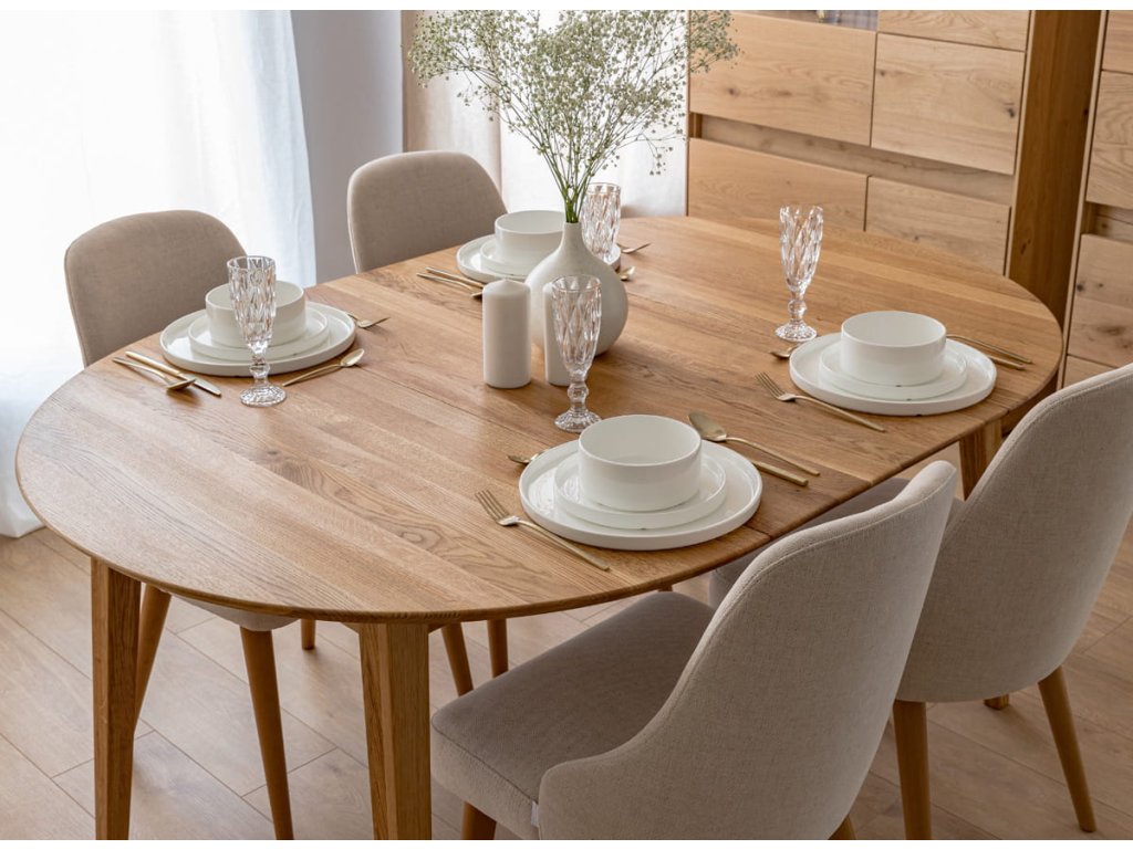Kulatý stůl Orbetello z dubového dřeva je skvělým doplňkem do jakéhokoliv interiéru, ať už se jedná o jídelnu, obývací pokoj nebo kuchyni. Jeho výhodou je nejen jeho stylový design, ale také praktičnost - díky kompaktním rozměrům se vejde i do menších prostor a díky roztažitelnosti lze snadno upravit podle počtu hostů.