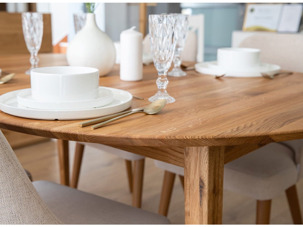 Dubový stůl se vyznačuje precizním zpracováním a použitím kvalitního dřeva, kterému neubývají jeho vlastnosti ani po dlouhodobém používání. Díky tomu je stůl stabilní a tichý při používání, což je důležité zejména v domácnostech s častými hosty a členy rodiny. Navíc se rozkládá a zmenšuje, takže je praktický a hodí se do prostor s různou velikostí. Přesné řezání jednotlivých prvků zajišťuje dokonalé provedení stolu bez nevzhledných nedostatků. Celkově je to stylový a praktický kus nábytku pro každou domácnost.