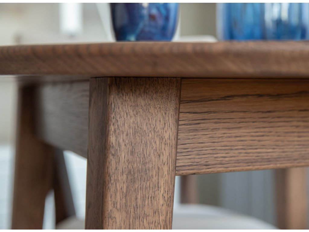 Povrchová úprava stolu olejováním nejen dodává elegantní vzhled, ale také dřevo posiluje a chrání, což zajišťuje jeho dlouhou životnost a odolnost vůči vlhkosti a mechanickým poškozením. Navíc, což je pro kupující klíčové, je možné dřevo obnovit a vrátit mu estetiku i po mnoha desetiletích každodenního používání.