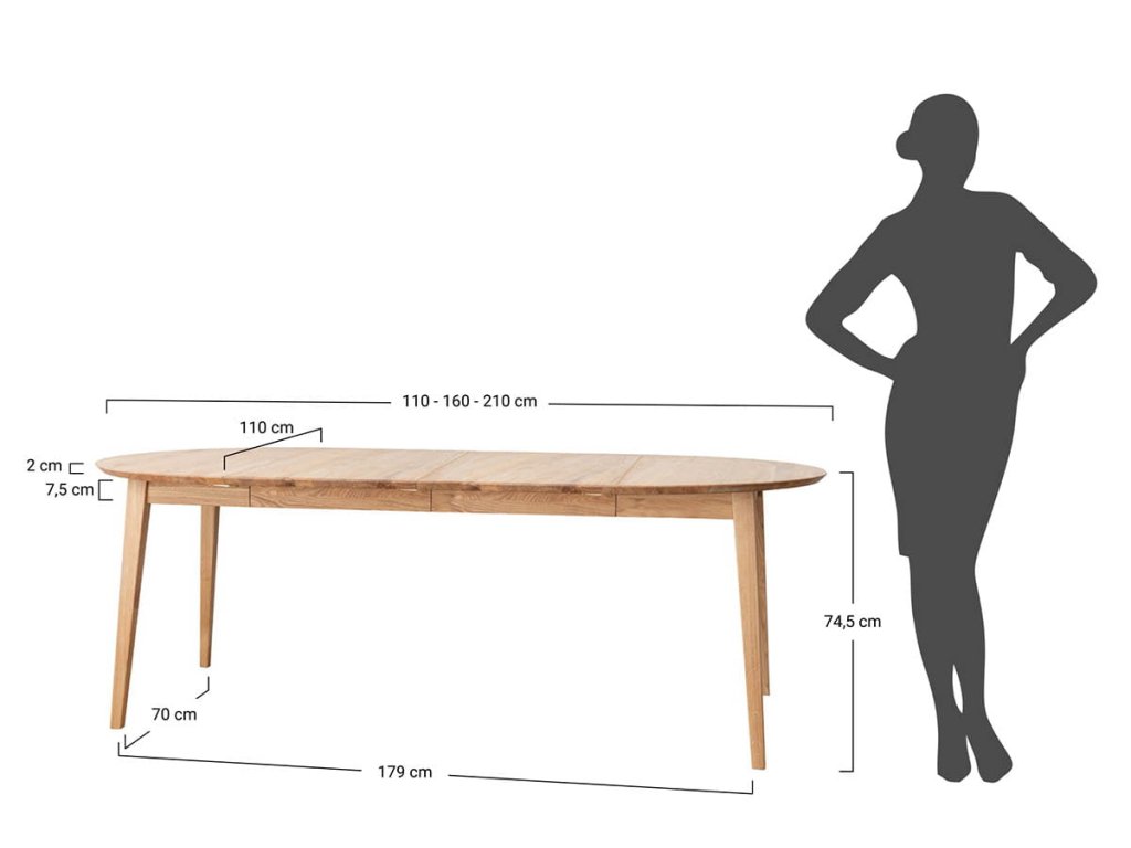Dubový stůl 110 se dvěma nástavci 50 cm Orbetello
