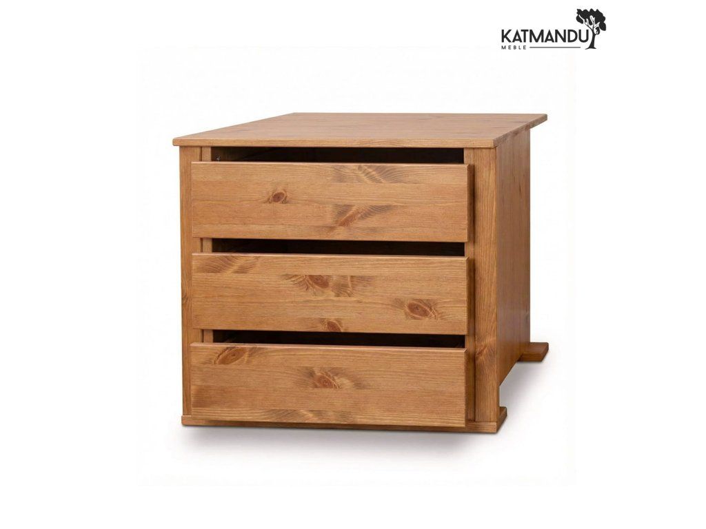 Modul je vyroben z masivní borovice, která zajišťuje pevnost, stabilitu a dlouhou životnost. Každý prvek je dokonale osazen a vedení zásuvek je precizně zpracované, což umožňuje hladký a plynulý chod. Systém tichého zavírání zajišťuje tiché a pohodlné používání bez praskání či zasekávání.