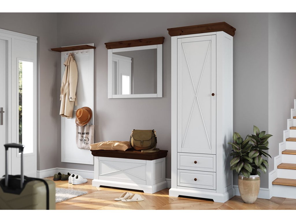 Skříň z kolekce Marone Elite v kombinace bílé a tabákové barvy je neobvyklou kombinací praktického pohodlí a dekorativního vzhledu, protože do interiéru přináší závan čerstvého vzduchu a jedinečný design. Hnědá horní deska tvoří harmonický celek s bílým podstavcem a ozdobnými šambránami, čímž dodává prostoru nostalgický, a přitom moderní charakter, zatímco bílá barva snadno zapadne do každé místnosti jako zajímavé pozadí pro ostatní barvy. Jedná se o univerzální kus nábytku, který se skvěle hodí do atmosféry ložnic nebo chodeb, kde je prioritou stylová jednotnost a na první pohled patrná hřejivost přírodního dřeva.