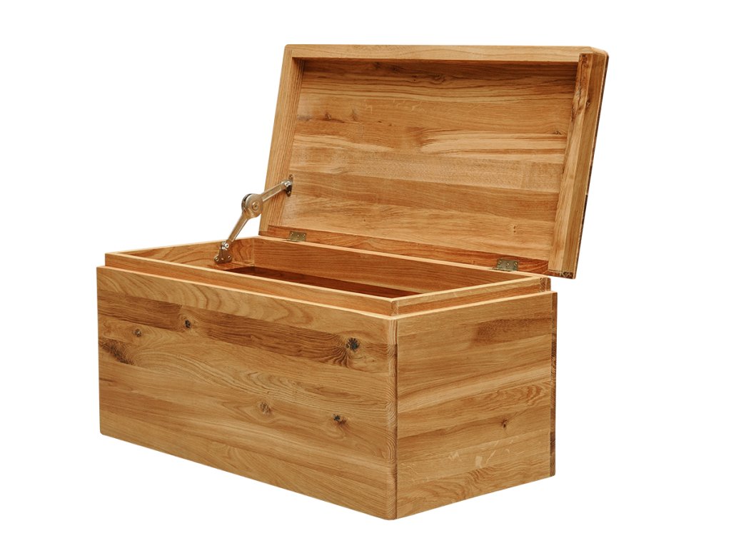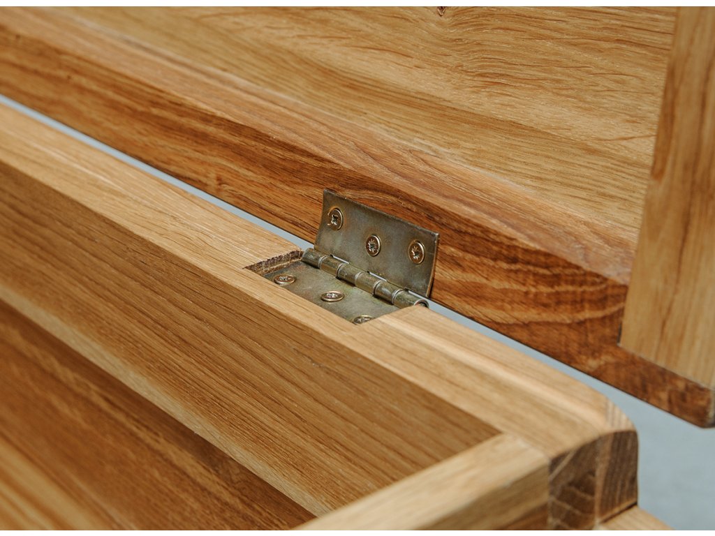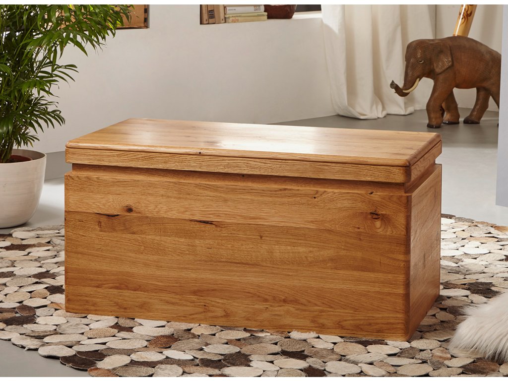 Originální truhla z dubového dřeva je jedinečným kouskem do obývacího pokoje, ložnice, předsíně nebo jídelny. Možná by z ní ale byla nadšená také nejedena malá princezna, která si ráda hraje na Popelku.