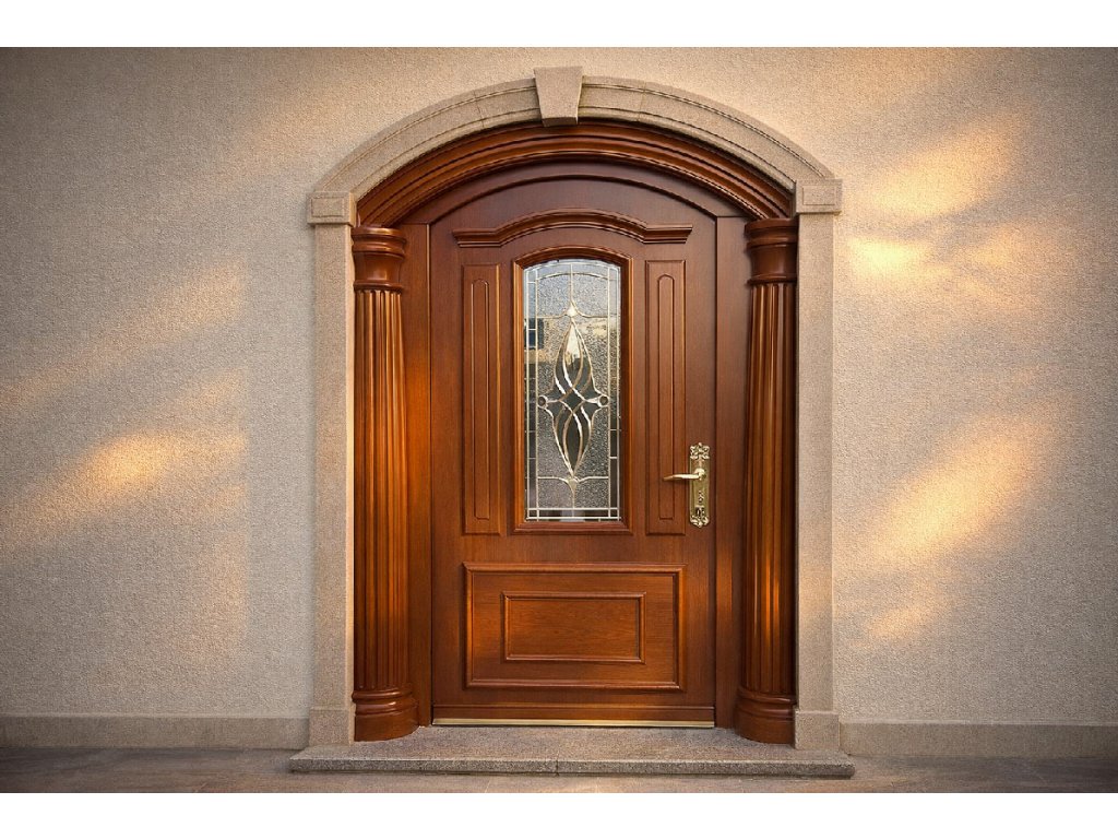 Vitrážové prosklení: Centrální prosklení s okrasnou vitráží a fazetami dodává dveřím unikátní charakter a zároveň chrání soukromí obyvatel, přičemž propouští dostatek světla.