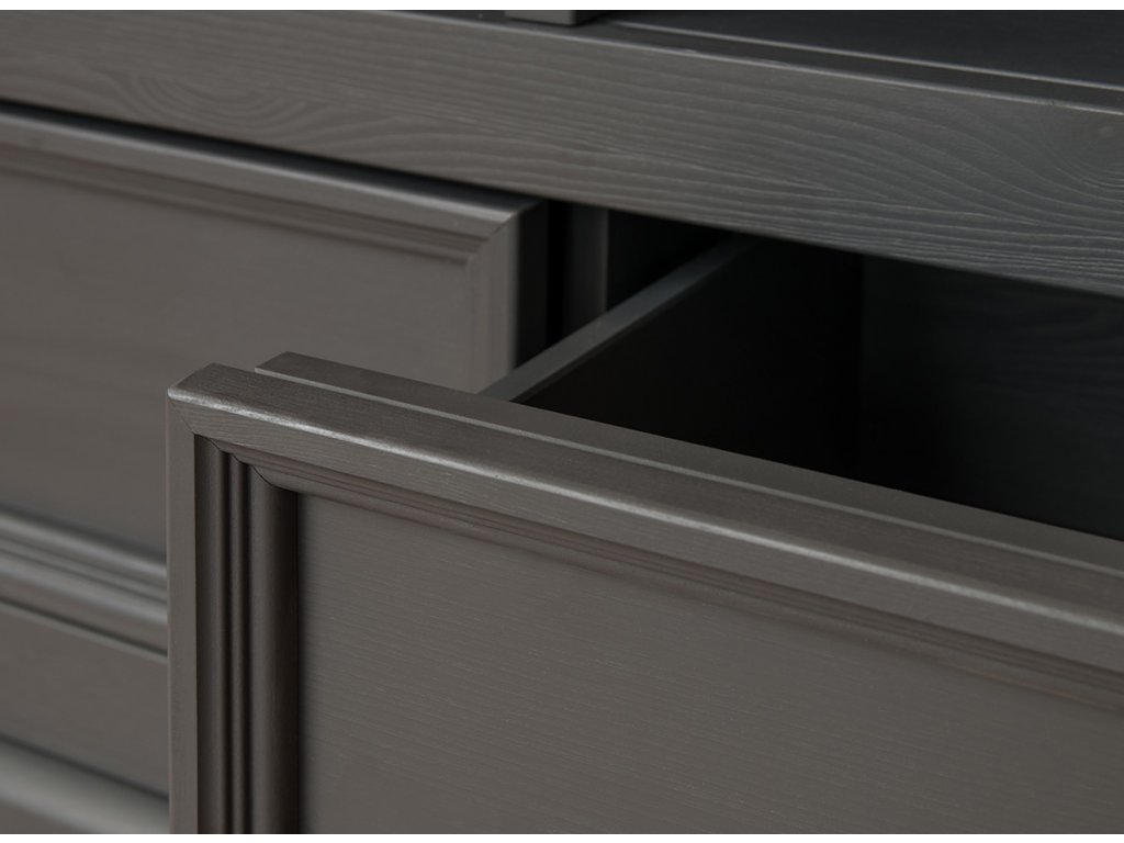 Velký televizní stolek v rustikálním stylu ze série Marone v grafitové barvě byl navržen pro ty, kteří hledají elegantní a zároveň funkční kus nábytku. Tento televizní stojan nabízí dostatek prostoru pro umístění televizoru a zároveň pomáhá uspořádat kabely a poskytuje další úložný prostor pro různé předměty denní potřeby.