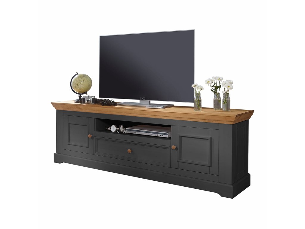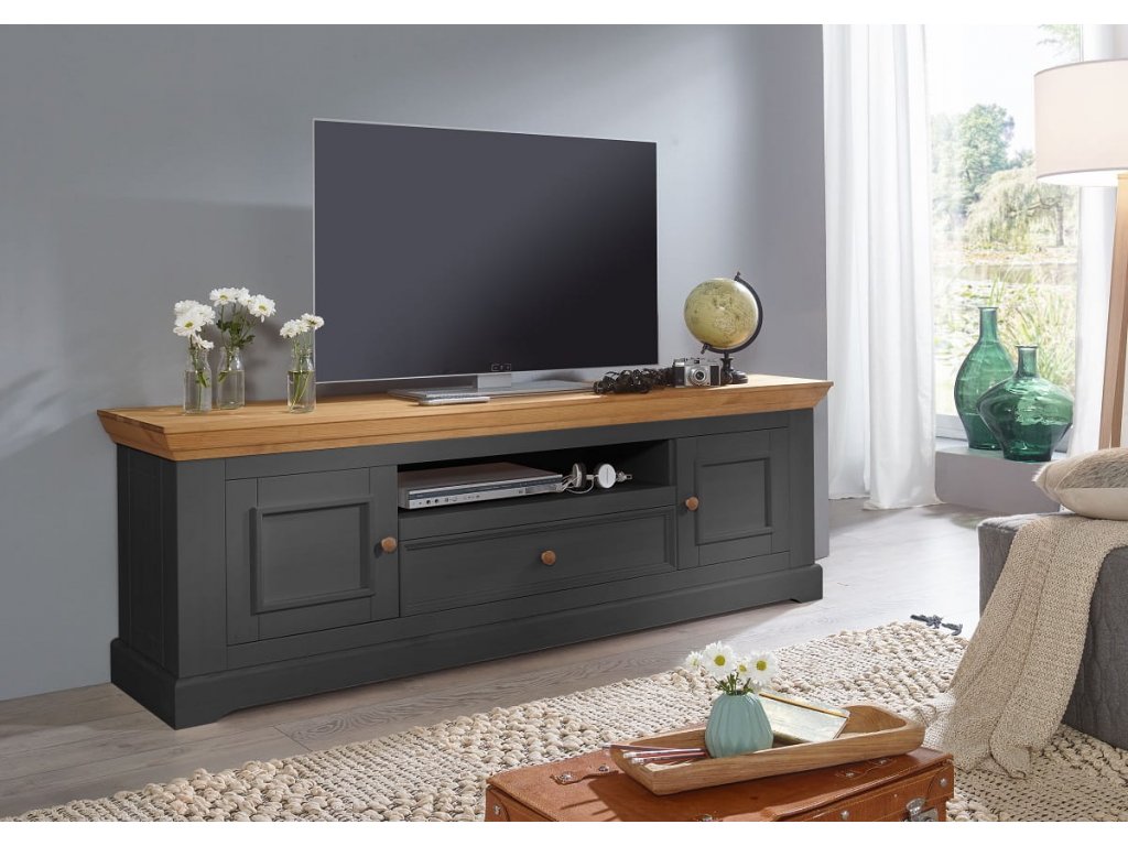 Velký TV stolek Marone, grafit-dub, borovice, rozměr 189x63x42cm