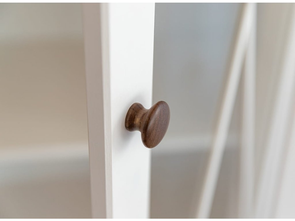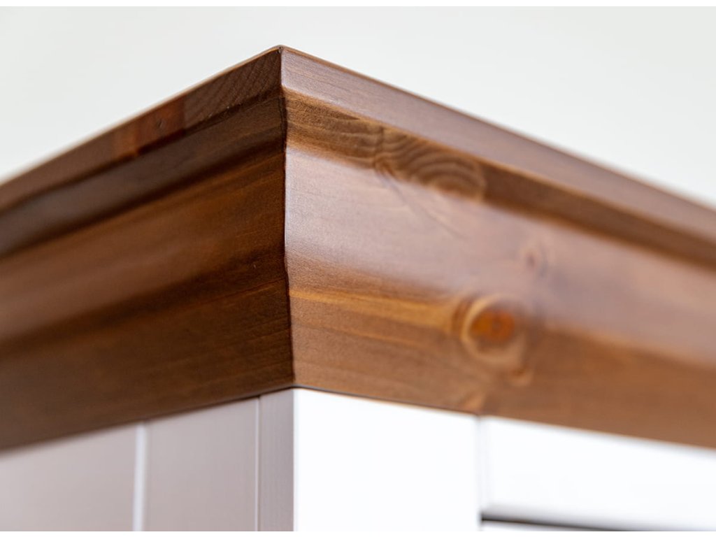 Vitrína z finské borovice je dokonalou kombinací ekologického povědomí a moderního designu. Barva na vodní bázi, která je z 85 % použita na povrchovou úpravu, chrání životní prostředí a zároveň ukazuje krásu přírodního dřeva. Dřevěné kování a funkce tichého zavírání dodávají nábytku nejen eleganci, ale také zvyšují jeho funkčnost, takže používání je jednoduché a příjemné. Díky jedinečnému tvaru, který podtrhuje individuální charakter každého kusu, se tento nábytek stane jedinečným doplňkem každého interiéru a spojuje v sobě odolnost, dobrý styl a třídu.