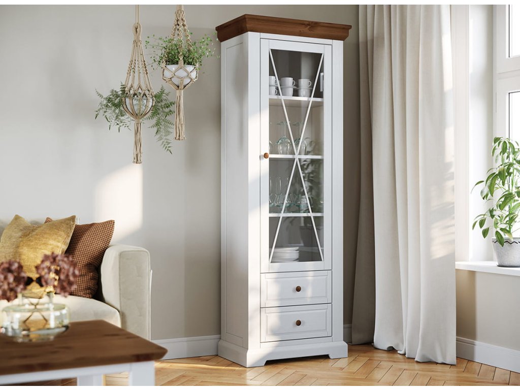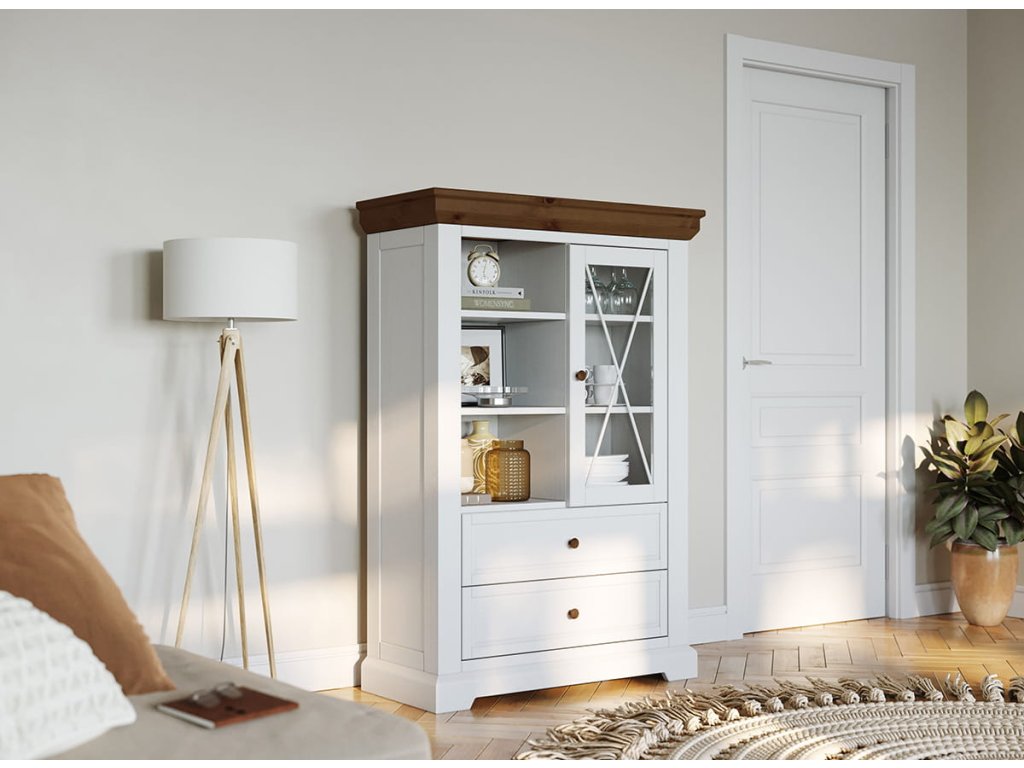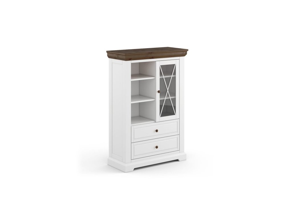 Vitrína 1.3 dřevěná bílá/tabáková Marone Elite