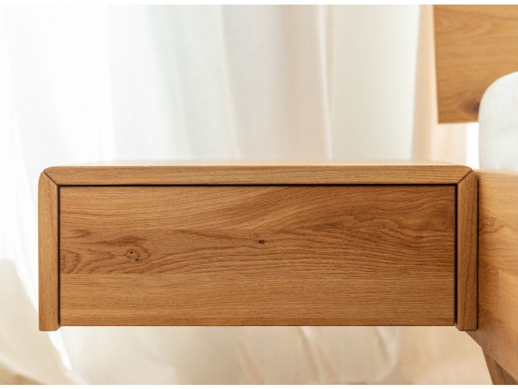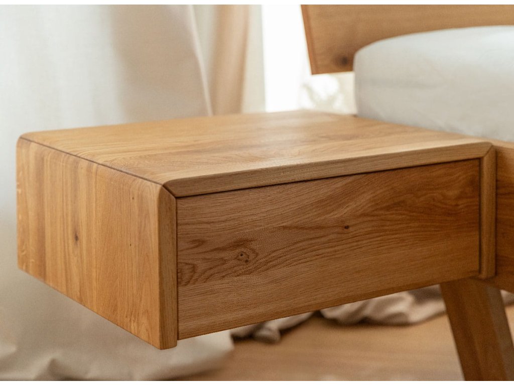 Dubový noční stolek, který nezabírá místo – uvolňuje ho.